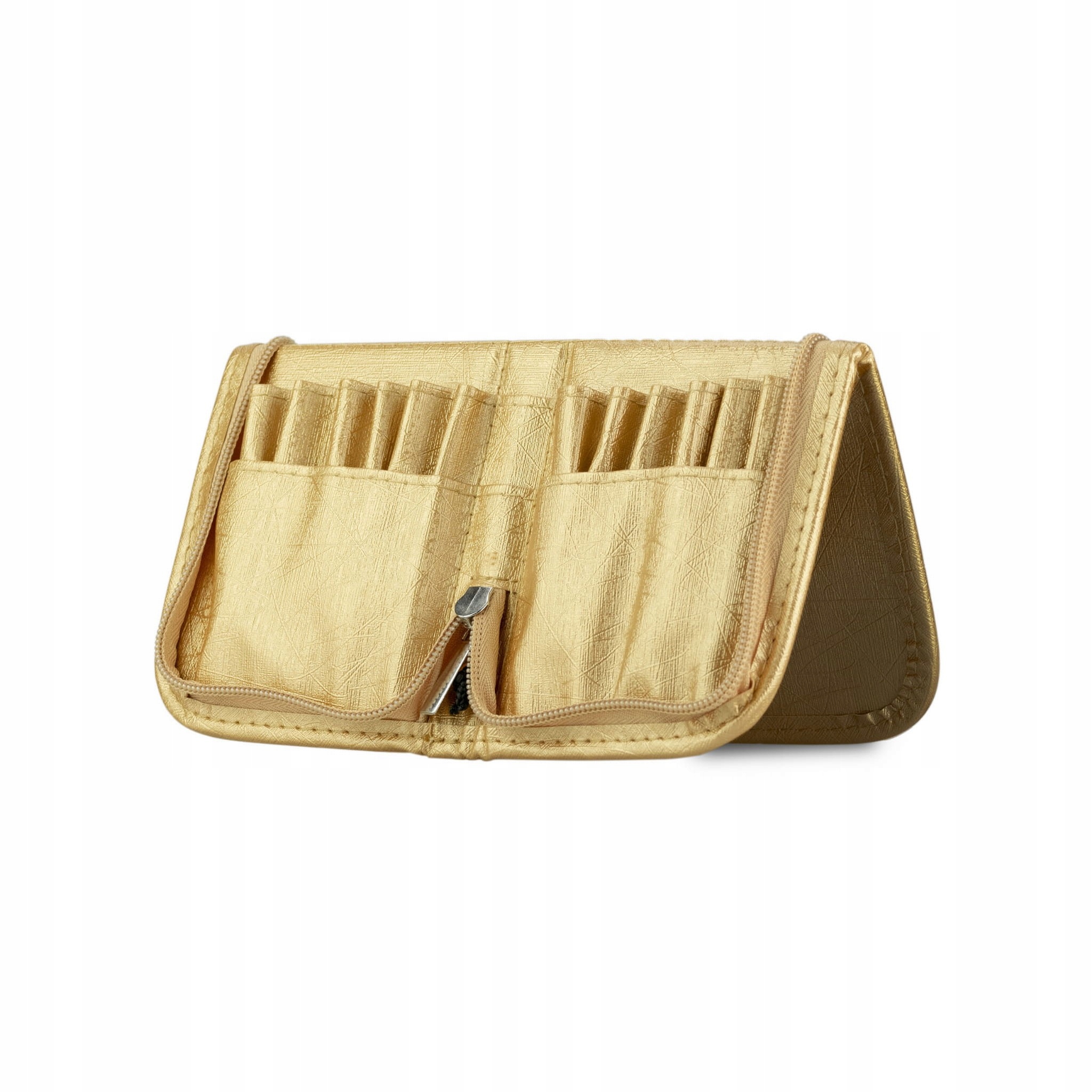 Дбайливо виготовлений косметичний пенал, який полегшує зберігання пензлів. Завдяки можливості складання та розміщення на столі, як підставки, укладати нігті буде легше та зручніше. Особливо це стане в нагоді при виготовленні прикрас, для яких найчастіше використовується не один пензлик. Ви зможете прибрати ту, з якою зараз не працюєте, не боячись, що вона впаде чи забрудниться.