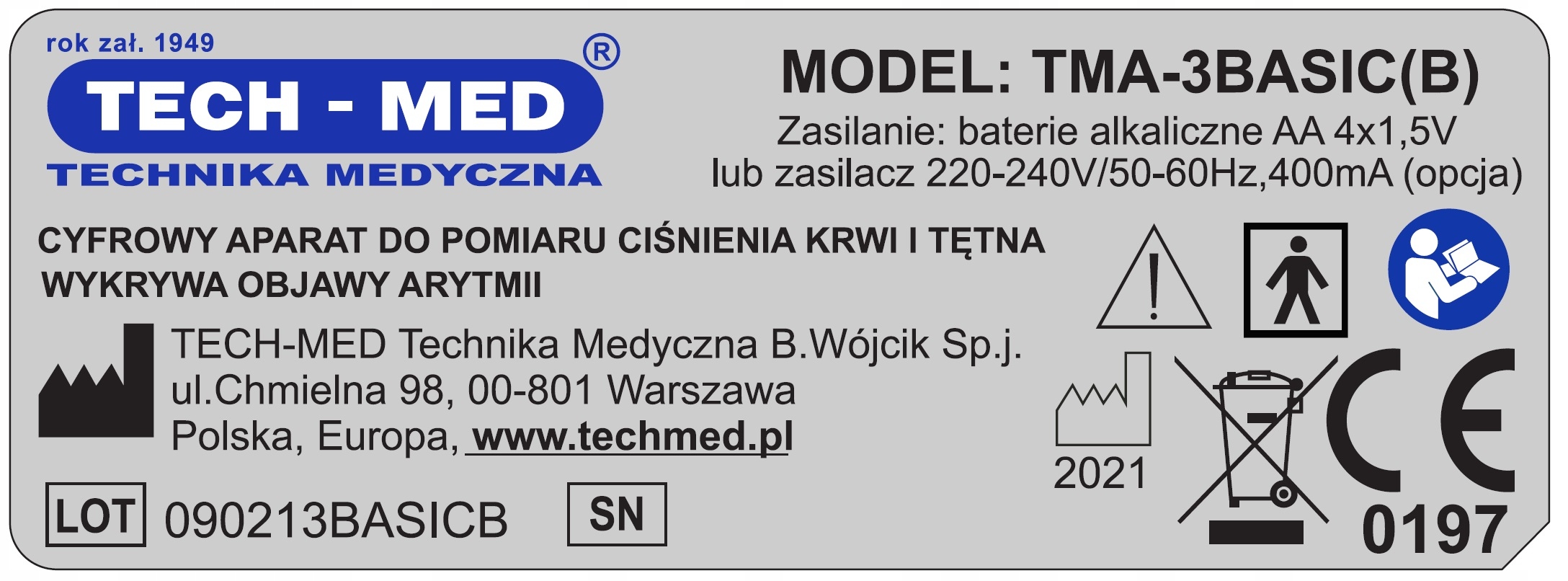 TECH-MED TMA-3 BASIC (B) — сучасний електронний тонометр, який використовує осцилометричний метод вимірювання за технологією FUZZY LOGIC. Тонометр характеризується високою точністю вимірювання - еквівалентною точності вимірювань, проведених кваліфікованим медичним персоналом при аускультації за допомогою механічних сфігмоманометрів. Ця точність була підтверджена клінічними випробуваннями. Виконати точне вимірювання артеріального тиску надзвичайно просто - для цього потрібно натиснути лише одну кнопку. Ергономічний РК-дисплей забезпечує легке читання результату вимірювання