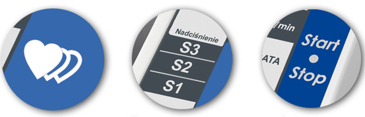 Завдяки функції виявлення симптомів аритмії ми отримуємо сигнал у разі необхідності звернення до лікаря для діагностики аритмії. Завдяки функції класифікації рівня тиску відповідно Стандарти Всесвітньої організації охорони здоров'я (ВООЗ) дозволяють проводити приблизну незалежну діагностику виміряного артеріального тиску. Функція пам'яті дозволяє відображати значення разом із специфікацією дати та часу вимірювання після натискання відповідної кнопки. Функція автоматичного вимкнення зменшує споживання батареї.