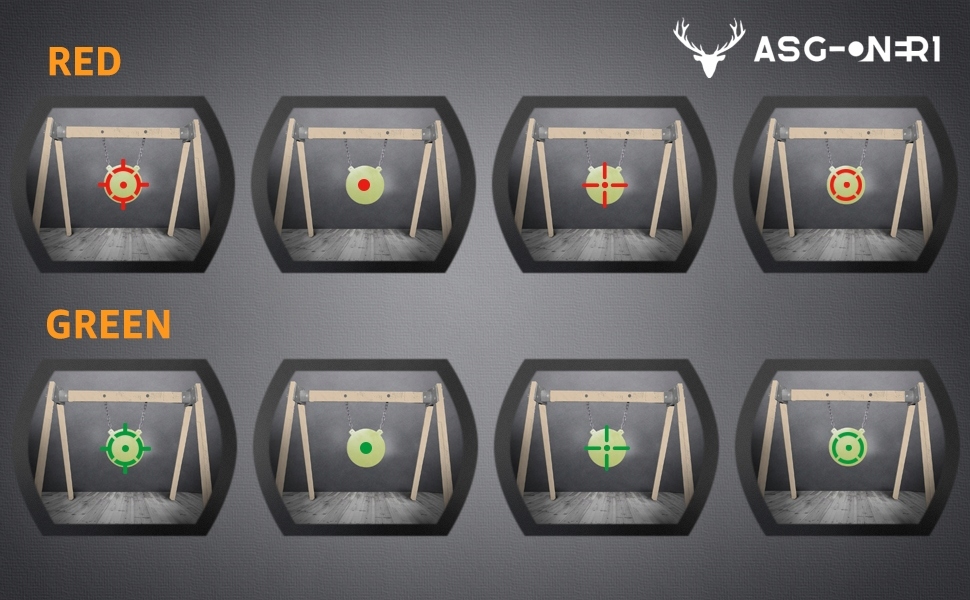 - Багатосітка: 4 візерунки сітки – зірка, хрест, щит і точка. Червоне та зелене світіння, 5 налаштувань яскравості.