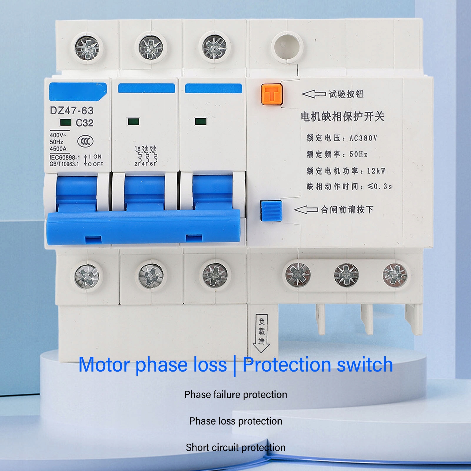1. Повна функціональність: Dz47S 63 3P 32A Захист від втрати фази двигуна відіграє ключову роль у захисті від короткого замикання для трифазних заглибних насосів і вентиляторів на 380 В.