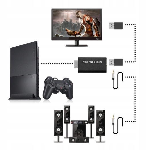 Адаптер дозволяє підключити консоль PS2 (яка не оснащена виходом HDMI) до введення HDMI телевізора високої роздільної здатності. і звук. >