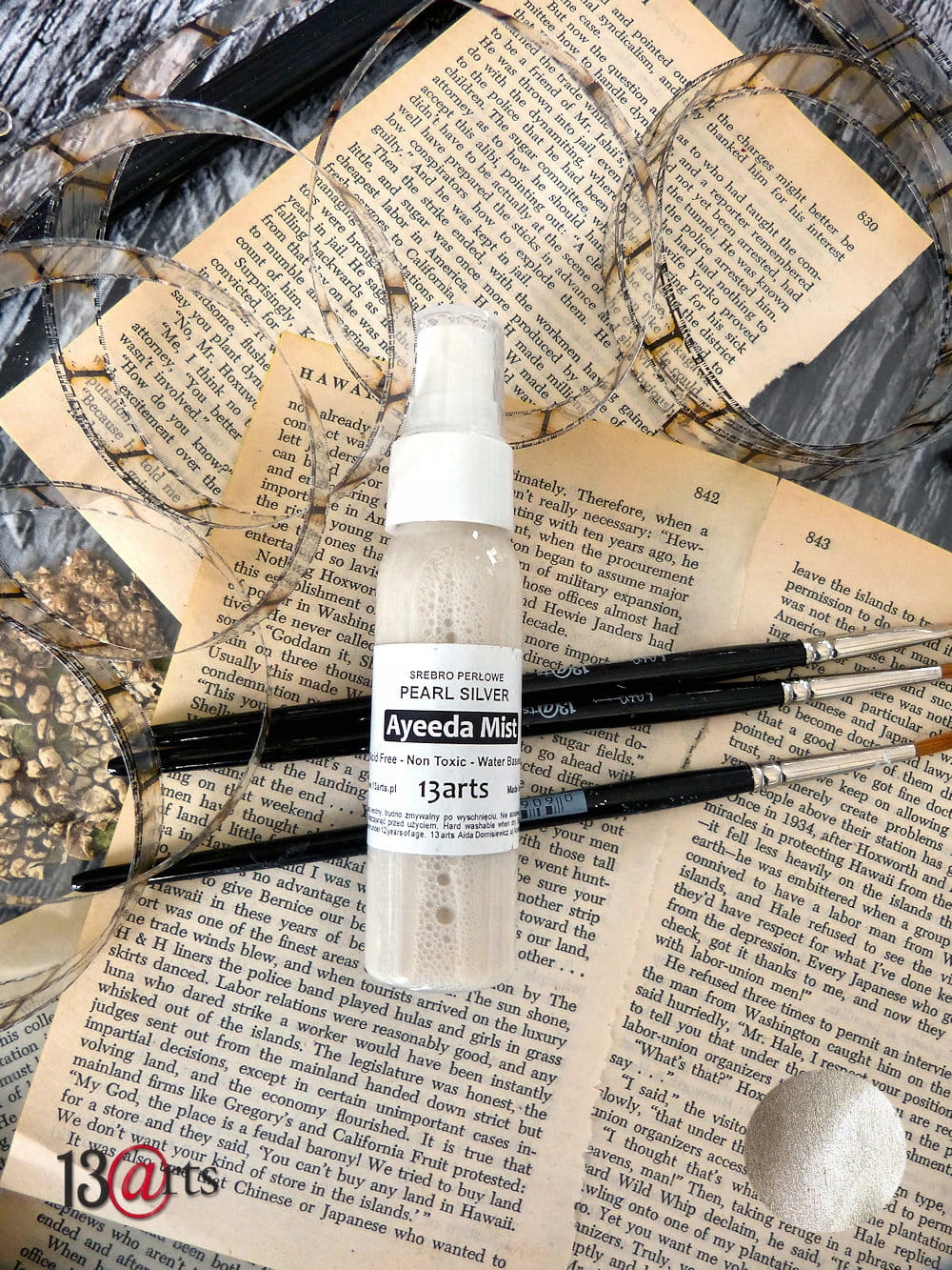 Ніжно забарвлюючий туман з тонким блиском срібла, ємність 33 мл. Нетоксичні чорнило на водній основі з блиском. Для отримання більш сильного ефекту можна нанести препарат у кілька шарів.
