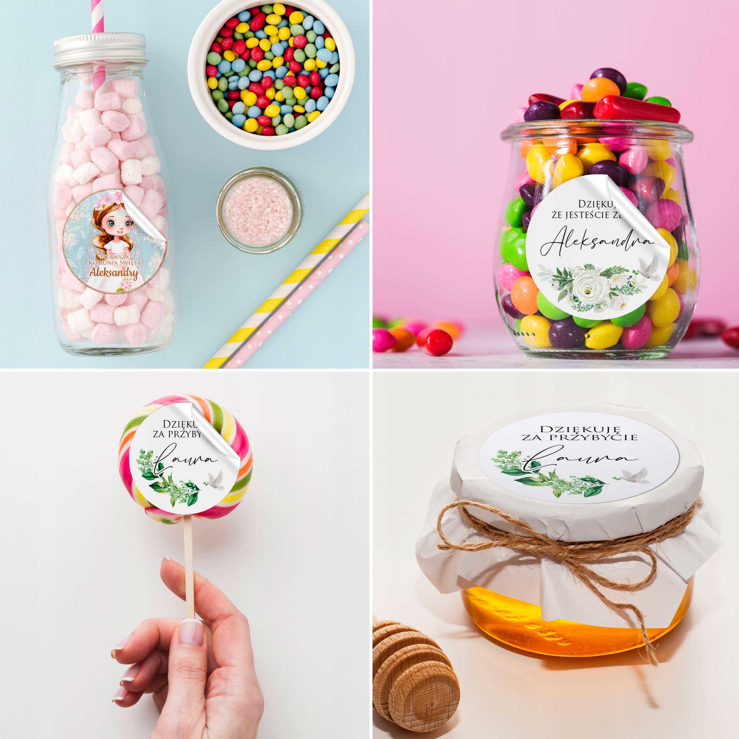 наклейки для льодяників або як доповнення до подяки за те, що прийшов. Наприклад, ви можете дотримуватися банки з медом або льодяниками та створити подарунки для гостей за низькою вартістю. Лікування 4 4 (нам багато вибрати)