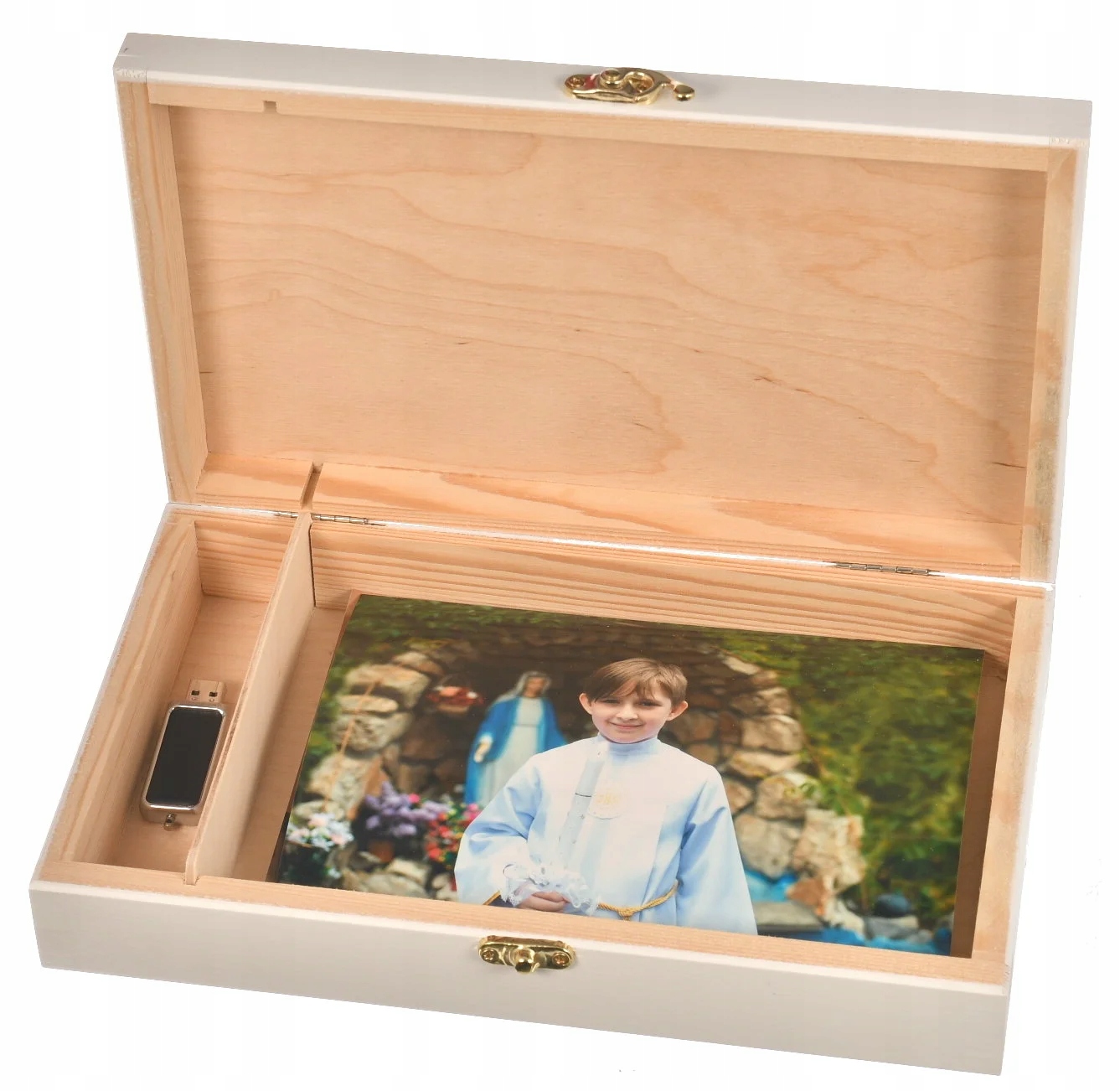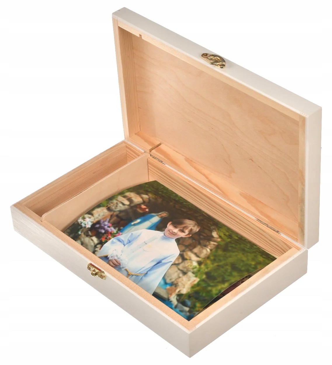 Персоналізована дерев’яна коробка причастя, фотографії та жодні подарунки