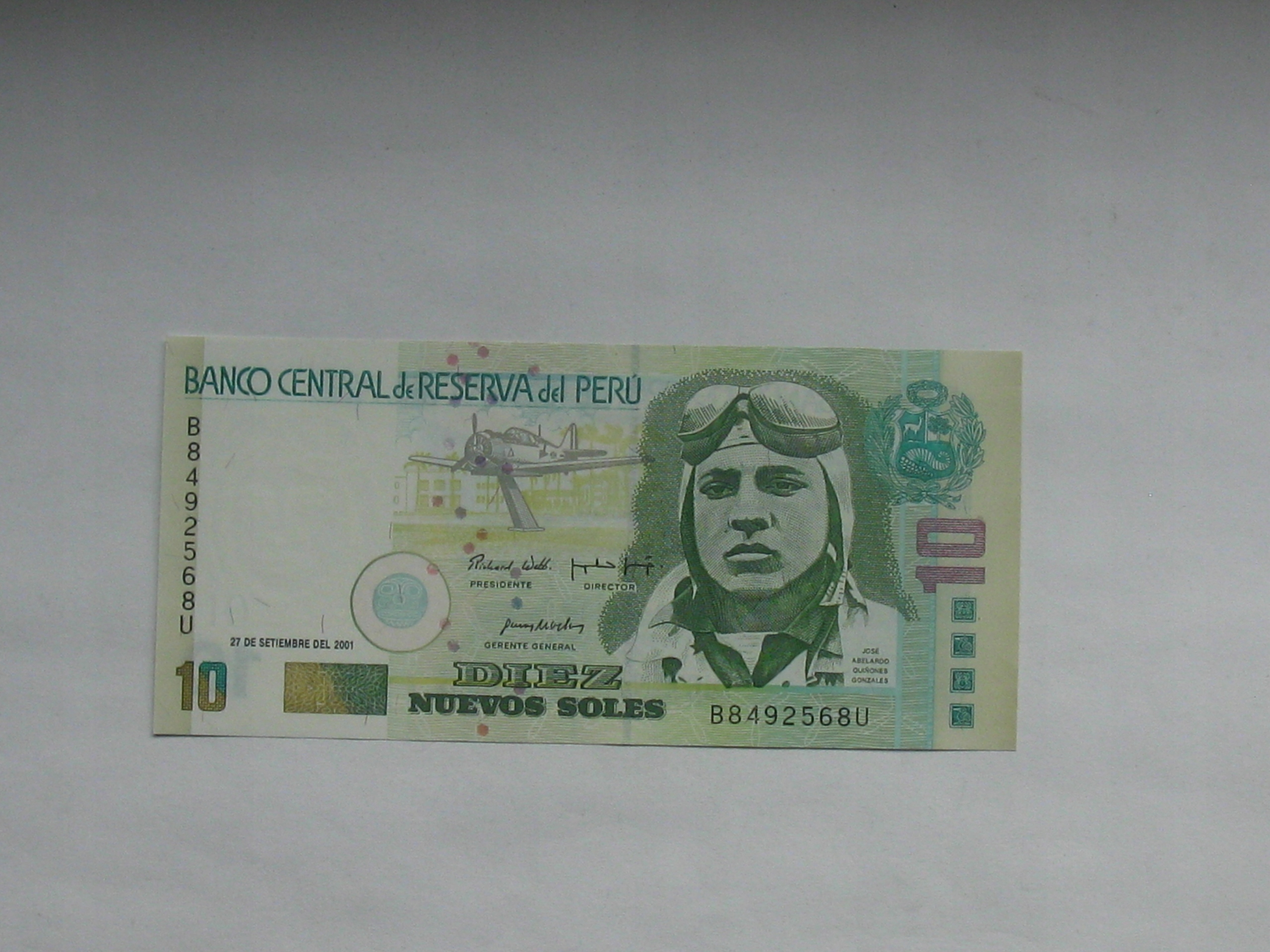 Перу банкнота 10 підошви 2001 року! UNC P-175 літаків