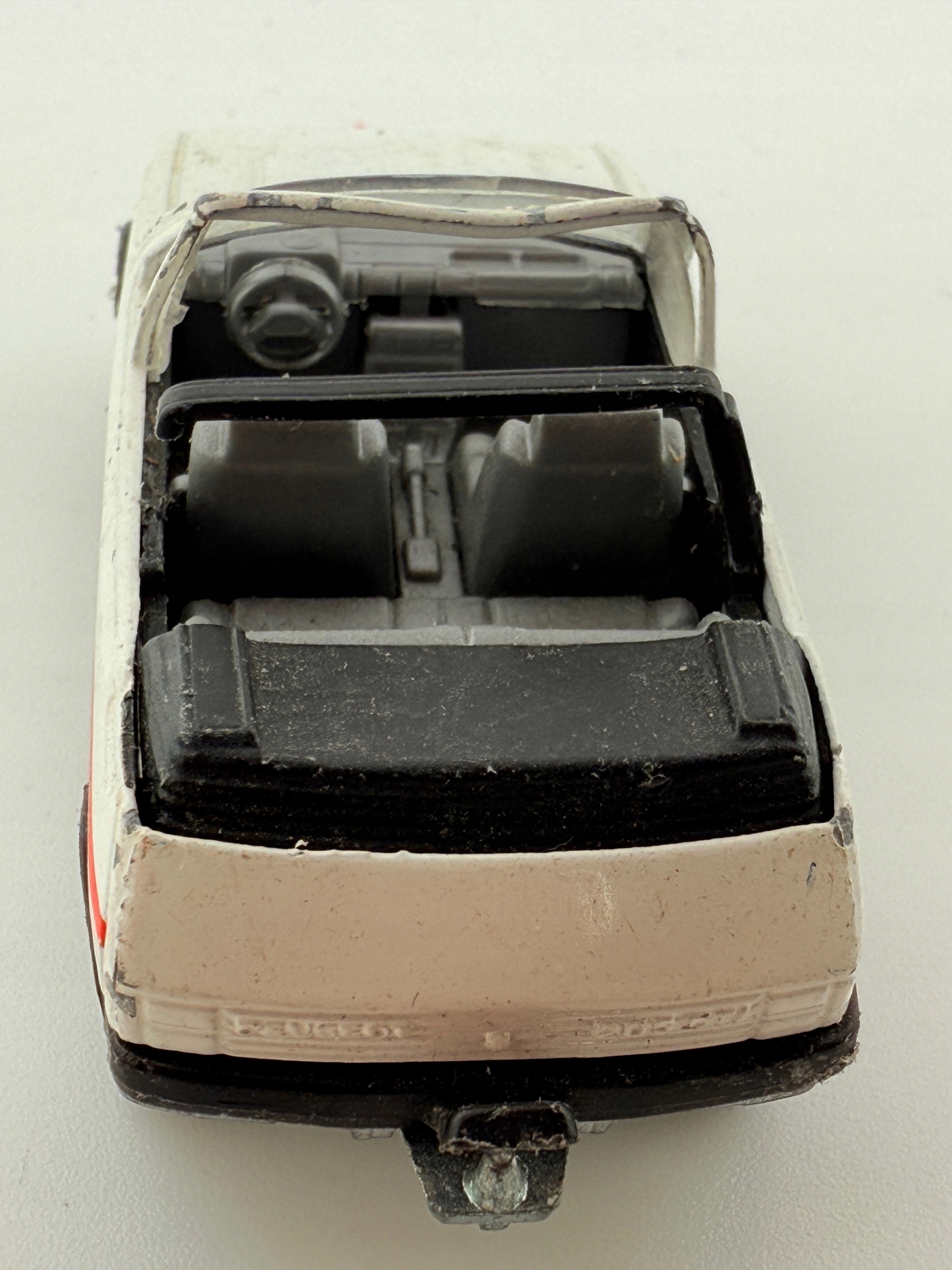 Модель: • Бренд: Majorette • Модель: Peugeot 205 GTI • Виробник: Majorette • Масштаб: 1:83 • Умова: Використовується • Матеріал: метал + пластик • Довжина (мм): 70 • Кольори: Білі з червоними ременями • Номер каталогу: 231/210