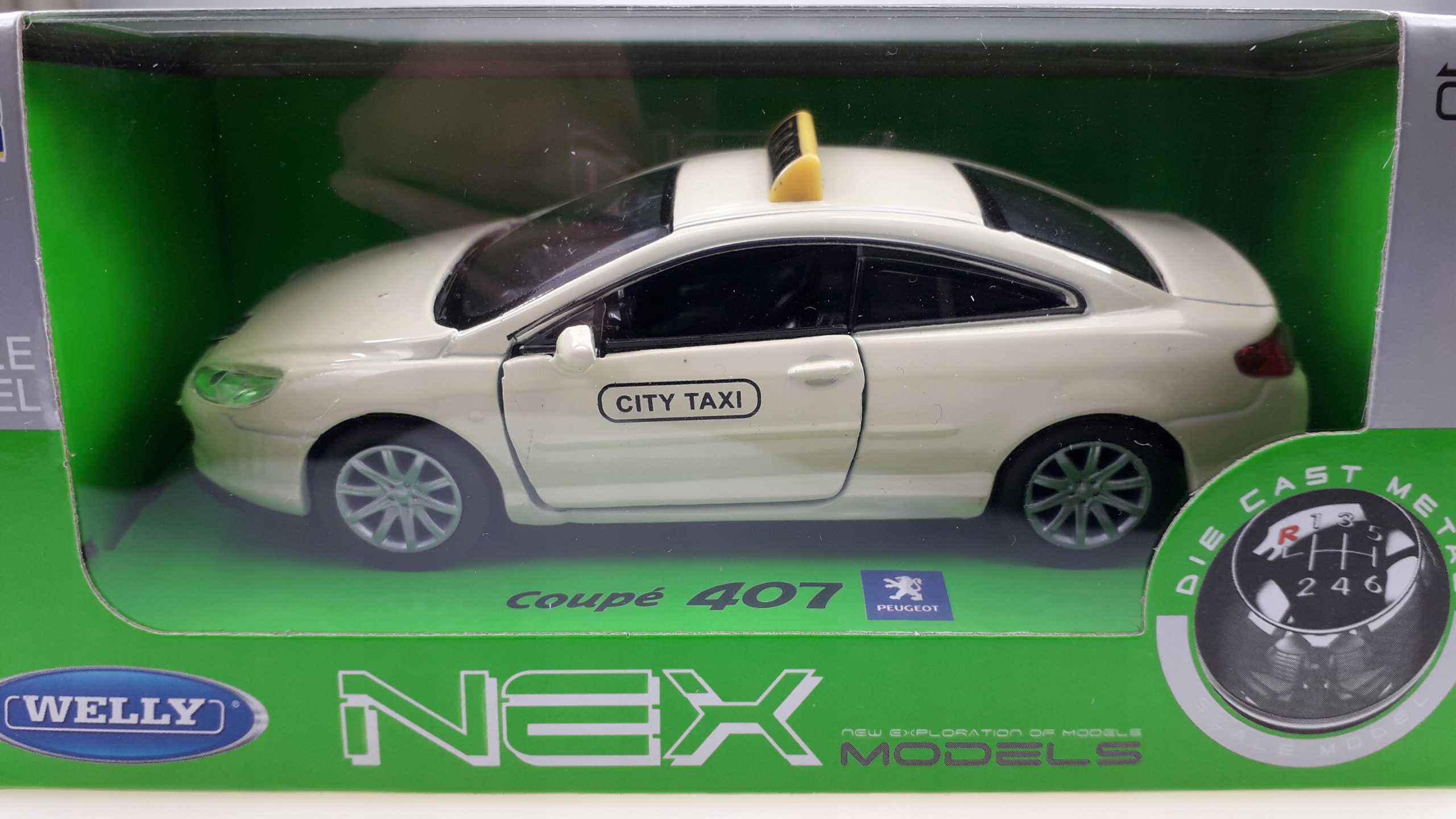 PEUGEOT Coupe 407 TAXI Cream Metal Model WELLY Масштаб 1:34