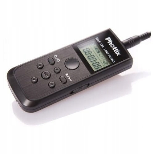 Phottix ® NIKOS — це електронний тригер із можливістю спуску затвора через регулярні проміжки часу, оснащений автоспуском, часовими інтервалами, налаштуванням тривалого часу витримки, функцією лампочки та можливістю програмування кількості спусків затвора. Таймер можна запрограмувати на будь-який період часу від 1 секунди до 99 годин 59 хвилин 59 секунд. Усі кнопки натискаються одним пальцем. Великий і читабельний РК-дисплей оснащений яскравим підсвічуванням. Пульт дистанційного керування має стильний вигляд і ергономічну форму, що робить роботу з ним суцільним задоволенням. Кнопка спуску затвора працює в два етапи: натискання кнопки наполовину встановлює фокус в режимі автофокусування, натискання кнопки до кінця спускає затвор камери. Пульт дистанційного керування має знімний кабель, тому його можна легко адаптувати для використання з камерами різних марок.