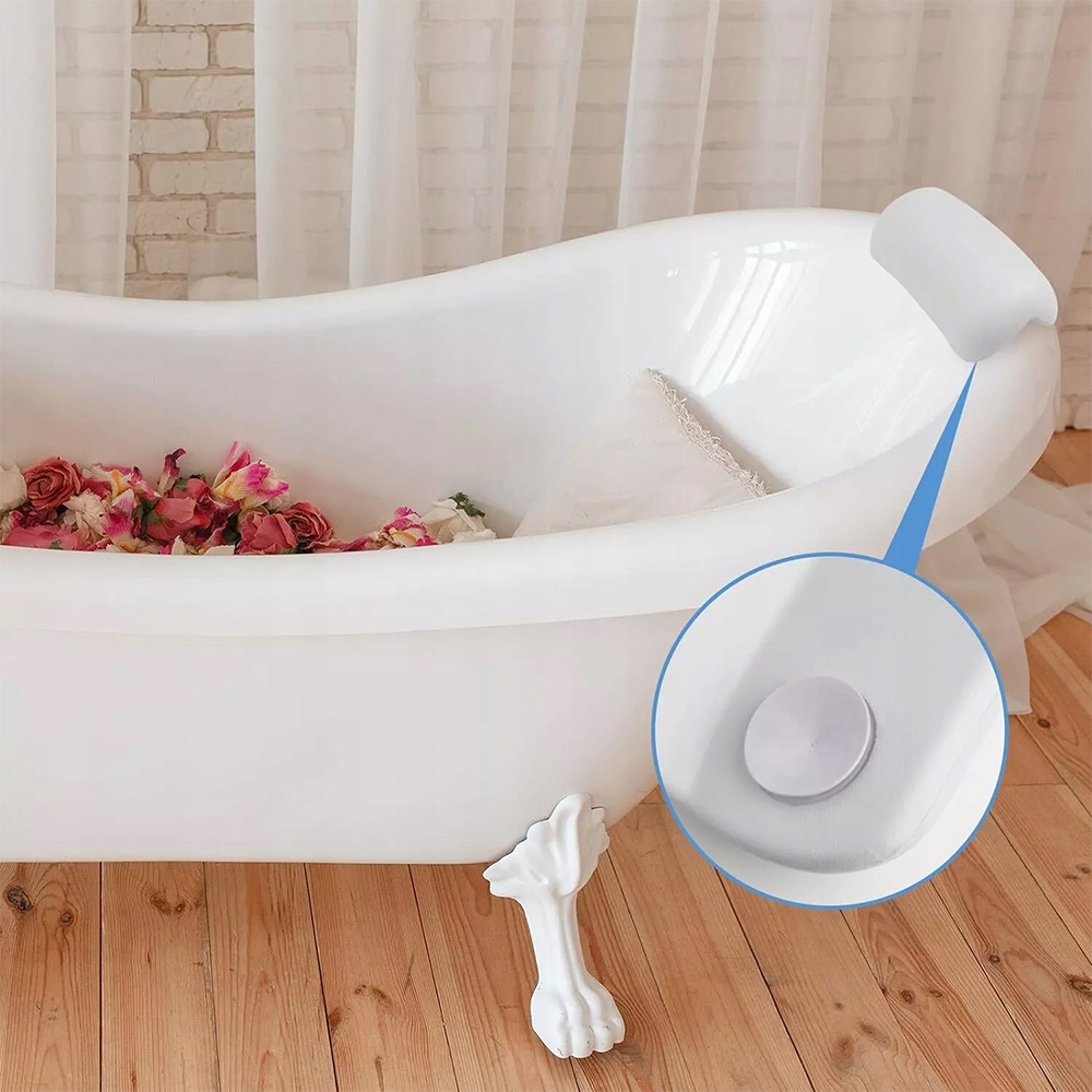 Задня частина подушки оснащена 2 великими присосними чашками, які можуть міцно прикріплювати подушку у ванну і завжди тримати її на місці , в якій ви її розміщуєте, і не ковзає з ванни. Присоска сильно прикріплена на задній частині подушки і ніколи не впаде з подушки. Стабільні присоски забезпечують відмінну адгезію на гладких поверхнях ванни.