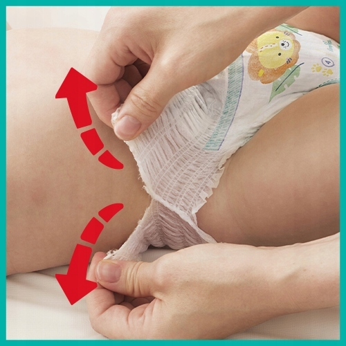 Підгузки Pampers Pants з повною посадкою на 360° адаптуються до форми животика вашої дитини, щоб уникнути протікання.
