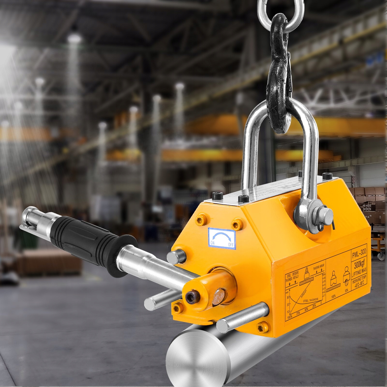 З вантажопідйомністю 300 кг і коефіцієнтом безпеки 2,5 цей домкрат ефективно справляється з вуглецевою сталлю, легованою сталлю, чавуном та іншими магнітними матеріалами. Забезпечує безпечне та ефективне підняття важких вантажів.