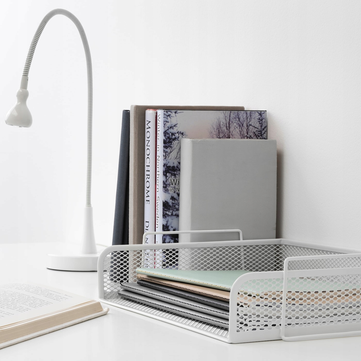 Лоток для листів DRÖNJÖNS - білий - це функціональне доповнення до вашого столу, яке дозволить вам зберігати документи акуратно та впорядковано. . Лоток має 2 рівні, на яких можна зберігати свої рахунки, списки або нотатки. Завдяки м’яким пластиковим ніжкам лоток захищає поверхню під ним від подряпин і забезпечує стабільне розташування.