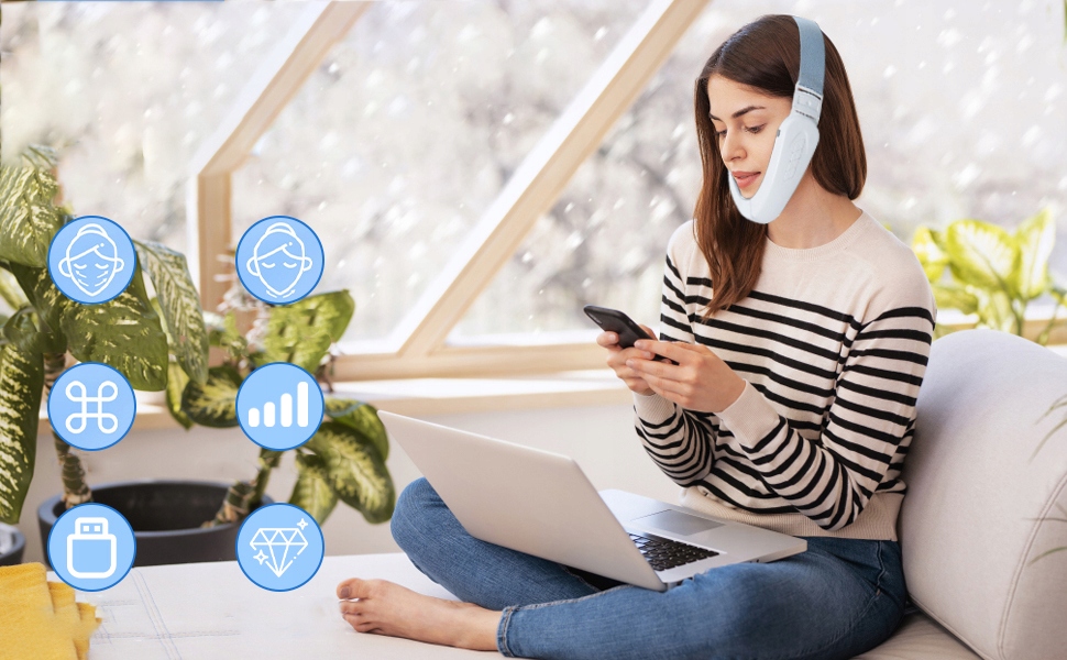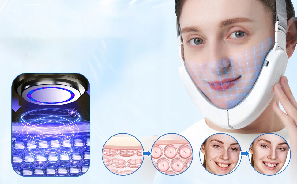 ✨✨【 мікропранія, що запобігає шкірі та натягах. Перш ніж увімкнутись, відрегулюйте довжину пов'язки голови до голови і використовуйте її, щоб прикріпити масажер для моделювання обличчя у формі літери v у правильному положенні, щоб ретельно масажувати м’язи щелепи та усунути підборіддя. Набряк. ;