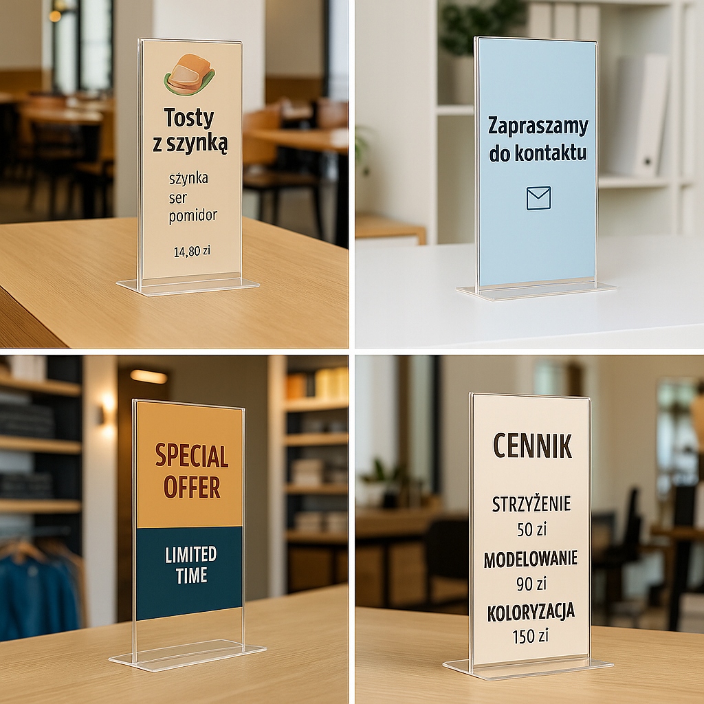 - У нашій пропозиції ви знайдете вибір стендів , виготовлених з високої якості, безбарвного оргскла, адаптованого до різних форматів рекламних та інформаційних матеріалів. 4