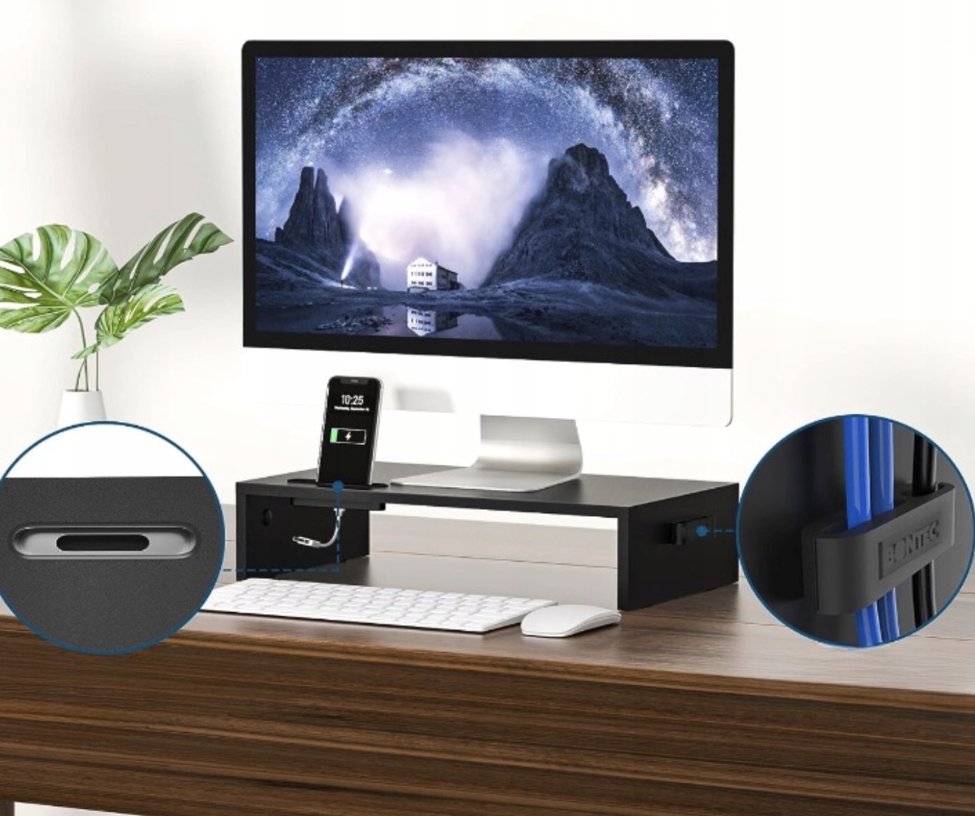Підставка для монітора BONTEC з тримачем для смартфона - чорна