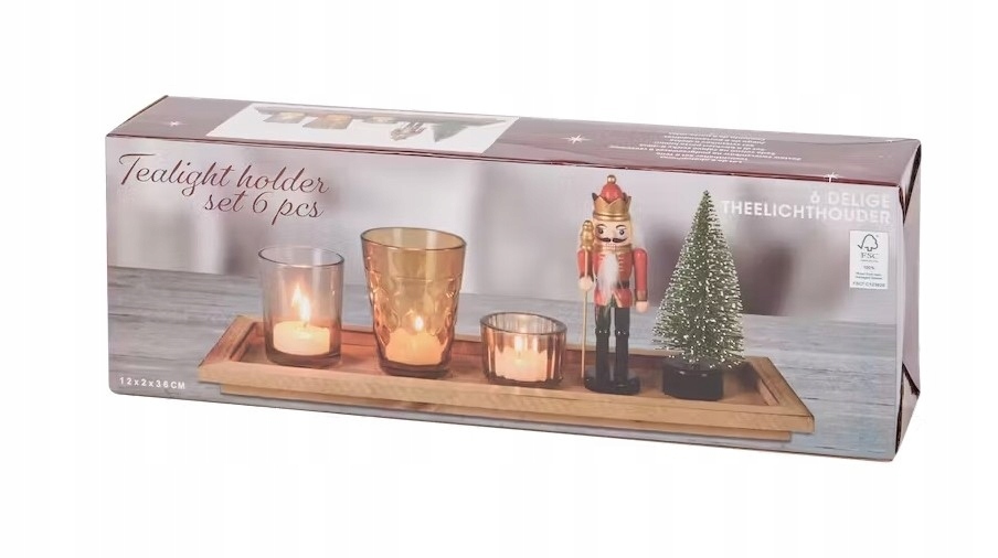 Подаруйте різдвяну магію у свій дім за допомогою цього елегантного набору, який не тільки красиво декорує, але й створює неповторну атмосферу затишку. Деревина, яка використовується у виробництві основи та свічників, сертифікована FSC®, що означає, що вона була отримана екологічно чистим способом.