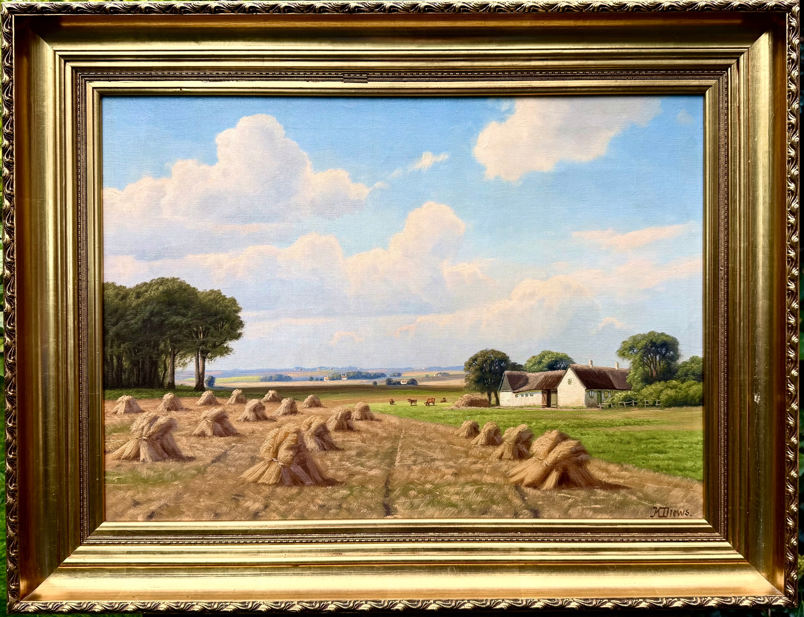 ПІДСВІЧЕНА ОРИГІНАЛЬНА СТАРА КАРТИНА - KAI DREWS (1884-1964) - ЖНИВА