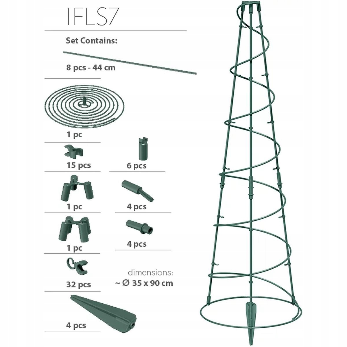Ви хочете забезпечити своїм рослинам стабільний ріст та захист від перелому? FLOO підтримує підтримку лісових лісів 35х90 см - це надійне рішення для альпіністських рослин, багаторічних рослин та овочів, які потребують міцної підтримки. Конічна конструкція діаметром 35 см і висотою 90 см ефективно стабілізує стебла, захищаючи їх від пошкоджень. 4