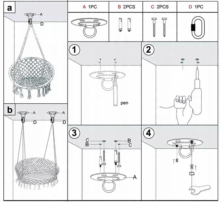 1. Гойдалки з гнізда лелеки зможуть обертатися на 360°, тому для такого підвішування гойдалок знадобиться лише один якір.