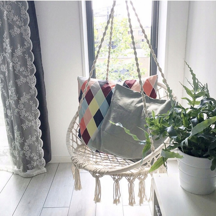 ⭐Підвісне крісло "Bocianie Gniazdo" - ідеальне рішення для людей, які хочуть відпочити на природі. Виготовлений зі струн, він забезпечує чудову вентиляцію та комфорт у теплі дні. Його легка, але міцна конструкція дозволяє легко повісити його на дерево, перголу або стелю. Відсутність металевих елементів робить крісло безпечним і зручним у використанні. Завдяки естетичному зовнішньому вигляду та натуральним матеріалам «Гніздо лелеки» ідеально впишеться в будь-який садовий простір, балкон чи терасу, створюючи затишне місце для відпочинку та качання на свіжому повітрі.⭐