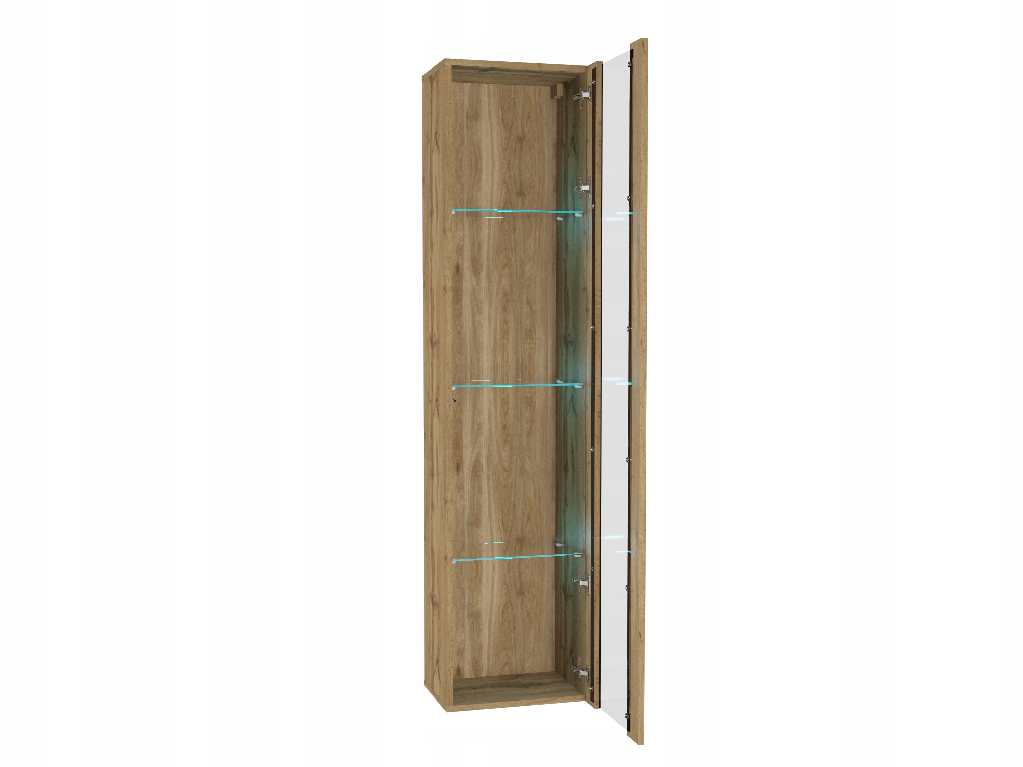 Поєднання відкритих і закритих перегородків у шафі підвісної точки дозволяє максимально використовувати простір у вітальні, а підсвітка діода створює додаткове джерело світла, додаючи затишку до внутрішньої частини. Фронти можуть відкриватися як праворуч, так і зліва.