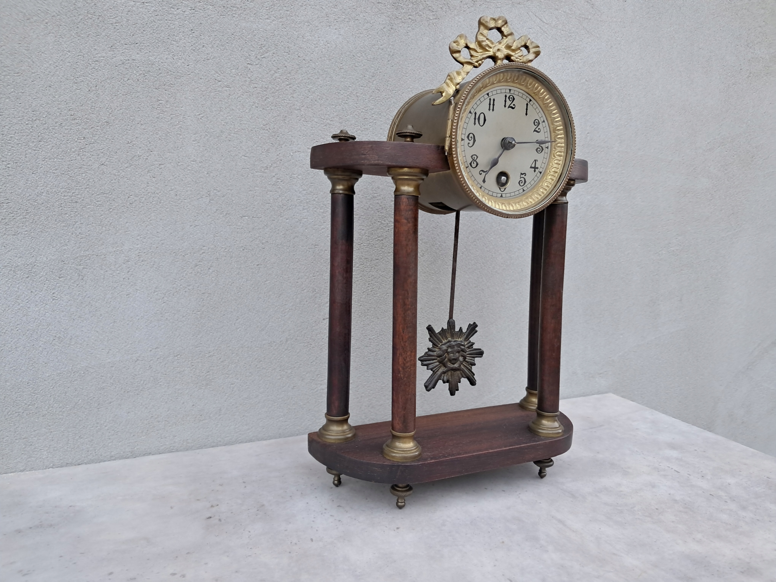 PIEKNY STARY ZEGAR PORTYKOWY OBUDOWA DREWNO Z MOSIADZEM