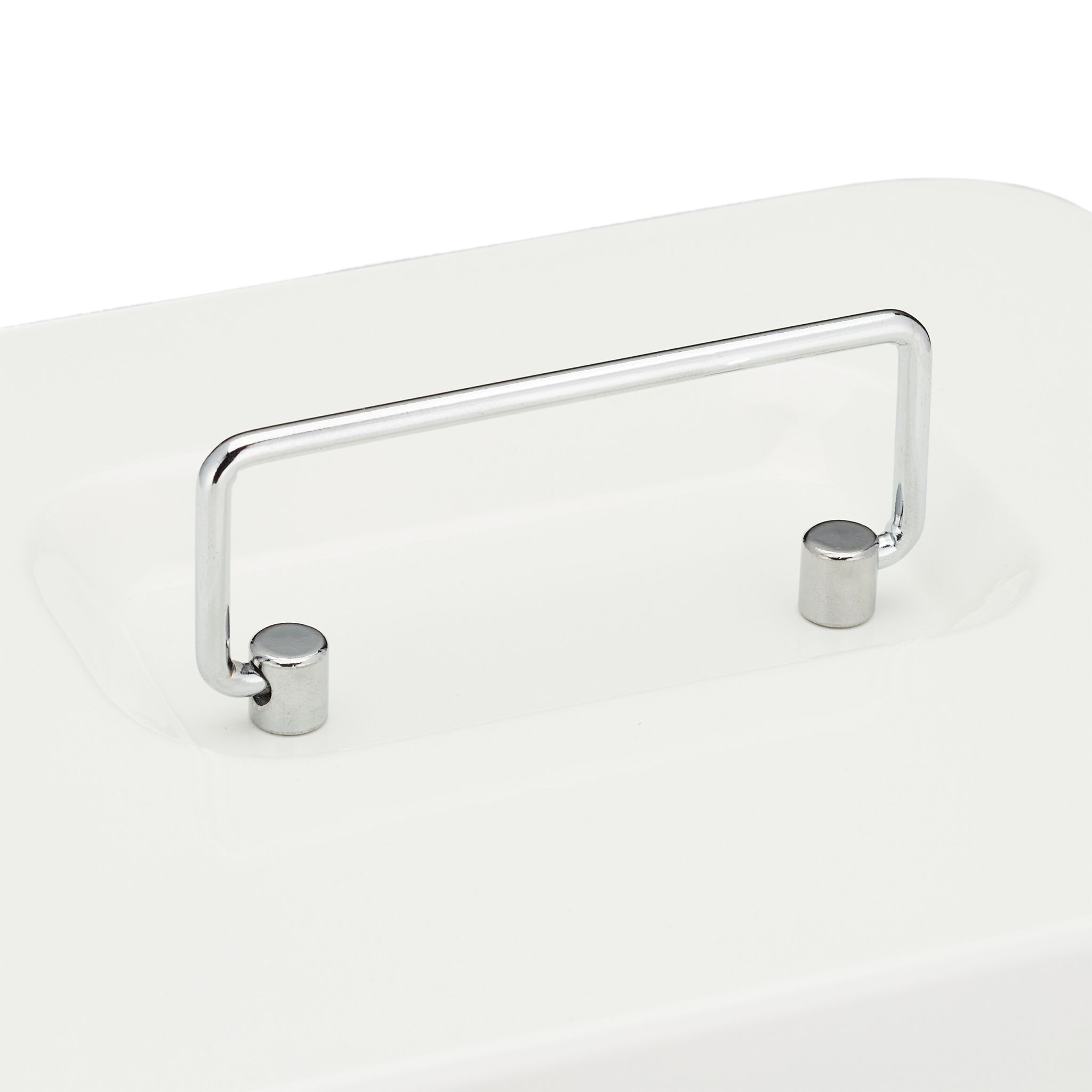 Невеликий касовий реєстр із знімною монетою -достою готівкою, ця касета для підрахунку грошей є правильним вибором. Реєстр каси підходить для використання вдома, а також для використання на ярмарках блох, ярмарках та інших заходах. У вставці знімної м'яти з 5 відділеннями ви можете сортувати монети за значенням, щоб завжди мати огляд. Вкладка закріплена 3-значною числовою комбінацією і може бути легко транспортована ручкою. ПРИМІТКА. Не забувайте про свій пароль і не збережіть його. В іншому випадку ви не можете відкрити заощаджувальну касету. Фіскальна скринька з комбінованим блокуванням -це готівка, посвідчення особи та інші документи -числове блокування для безпечного сховища, щоб їх сортувати та видалити, скористатися транспортом м'яти завдяки заглибленій ручці та багато іншого. Касета з грошима докладно в x ширину x main: прибл. 8,5 х 20 х 17 см вага: прибл. 0,8 кматерія: залізо, пластик, стабільний колір комбінованого блокування кольорів проходів до положення 0-0-0 пластики гроші Матеріали Матеріали 60% заліза 30% Пластик 10% Сталірд 1004772_49