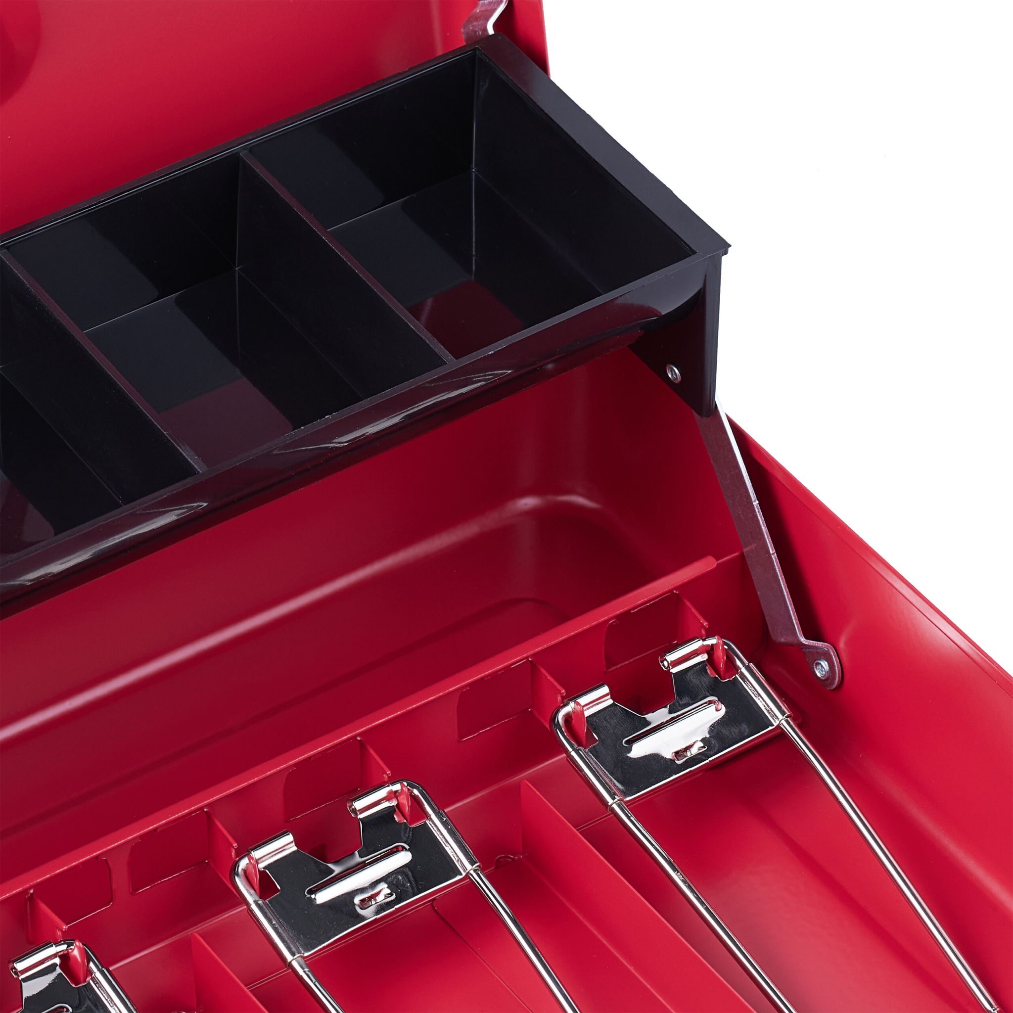Щоб безпечно зберігати готівку, ця касета, що підраховує гроші, є правильним вибором. Банк Piggy підходить для використання в домашніх умовах, а також для використання на ярмарках блох, ярмарках та інших заходах. Жорсткі гроші можна відсортувати в 5 відділеннях для монет, а в 4 відділеннях для банкнот є місце, щоб банкноти завжди мали попередній перегляд. Каса, закріплений 3-значним числовим комбінацією, і його можна легко транспортувати за допомогою ручки.