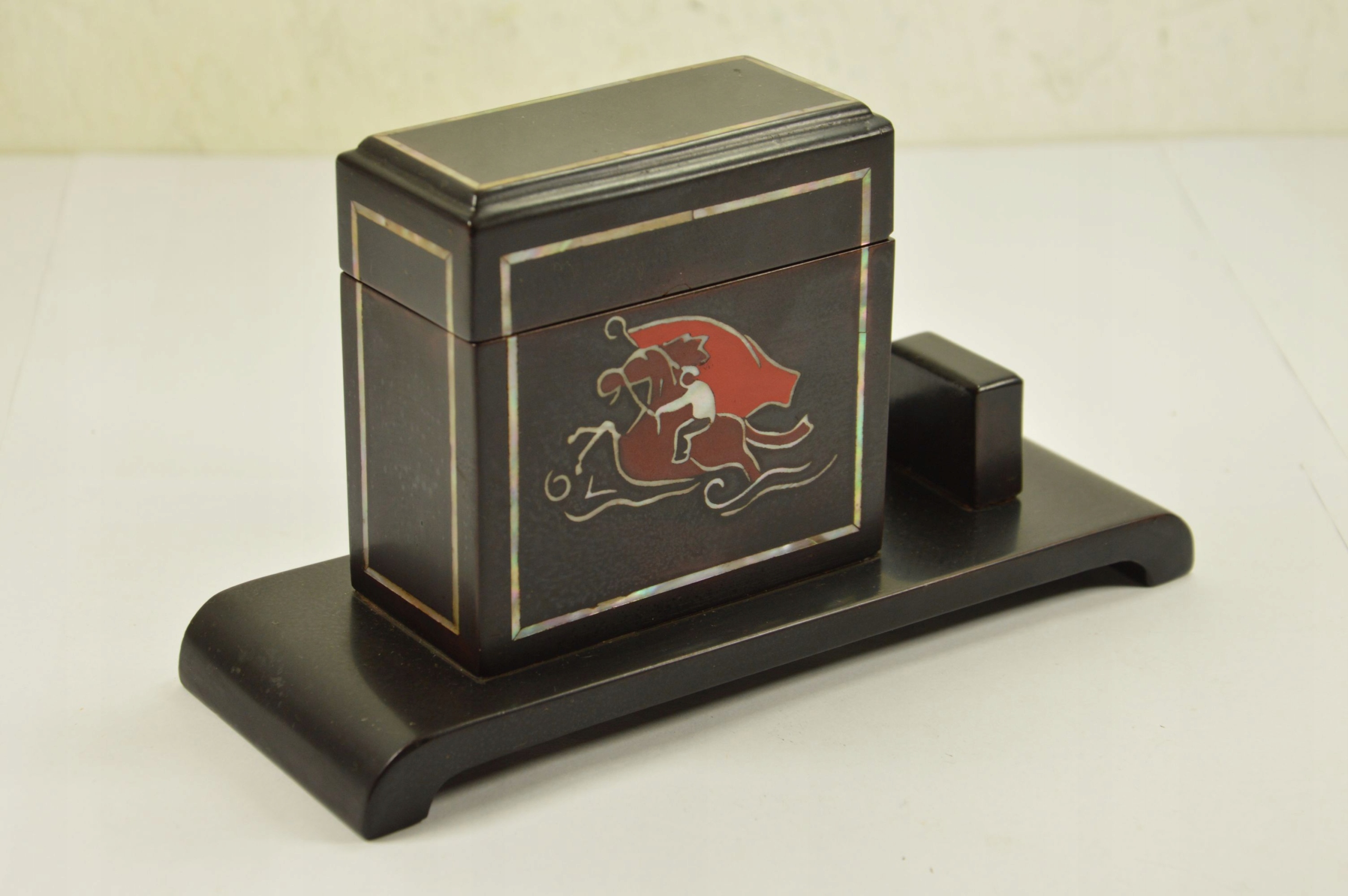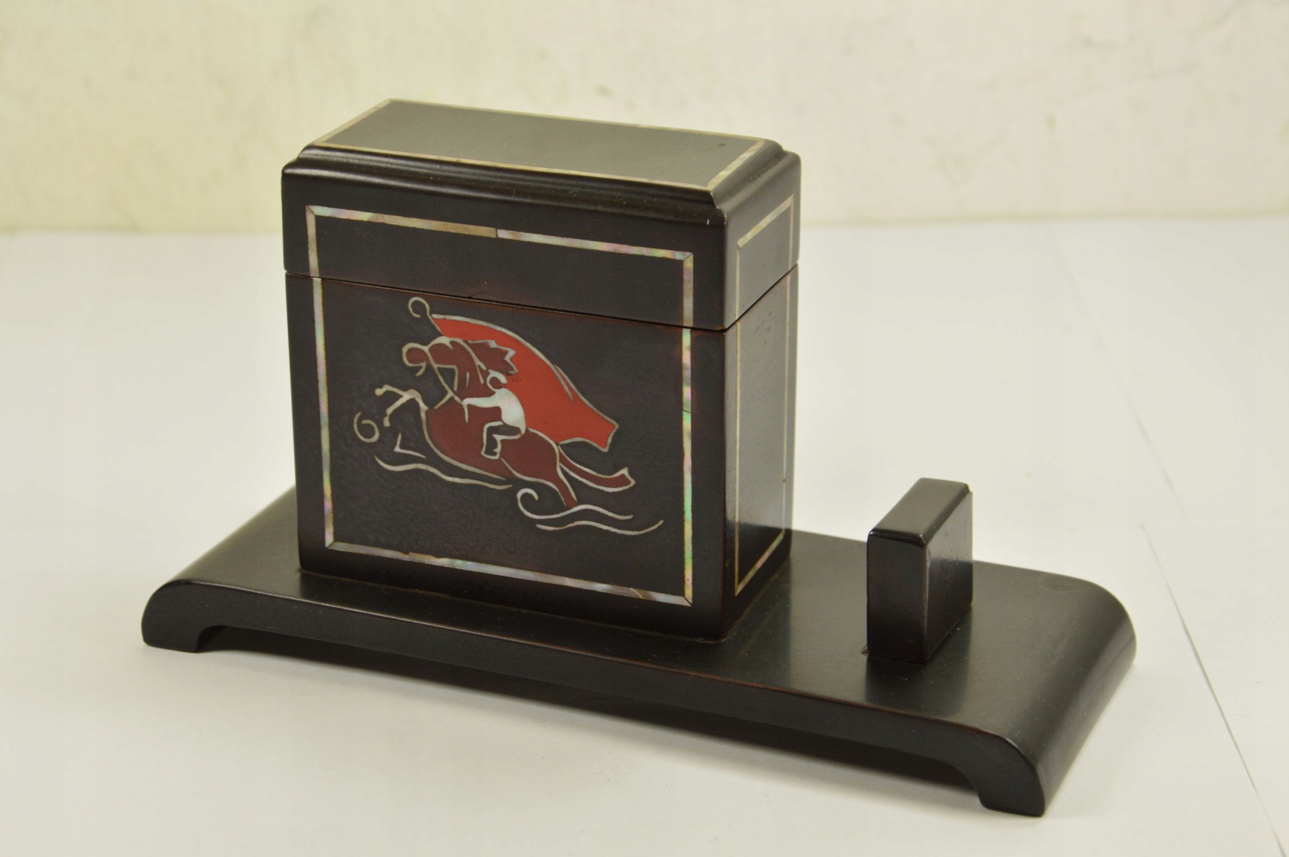 PIĘKNA INKRUSTOWANA SZKATUŁKA KOŃ MASA PERŁOWA