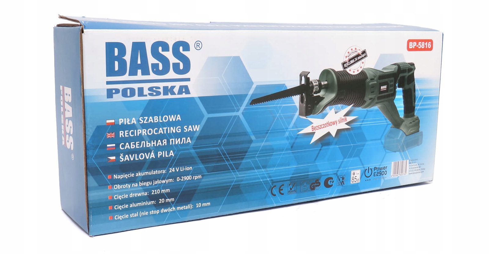 Акумуляторна шабельна пила BASS POLSKA, виготовлена з високоякісних матеріалів, незамінна в кожному гаражі чи майстерні.