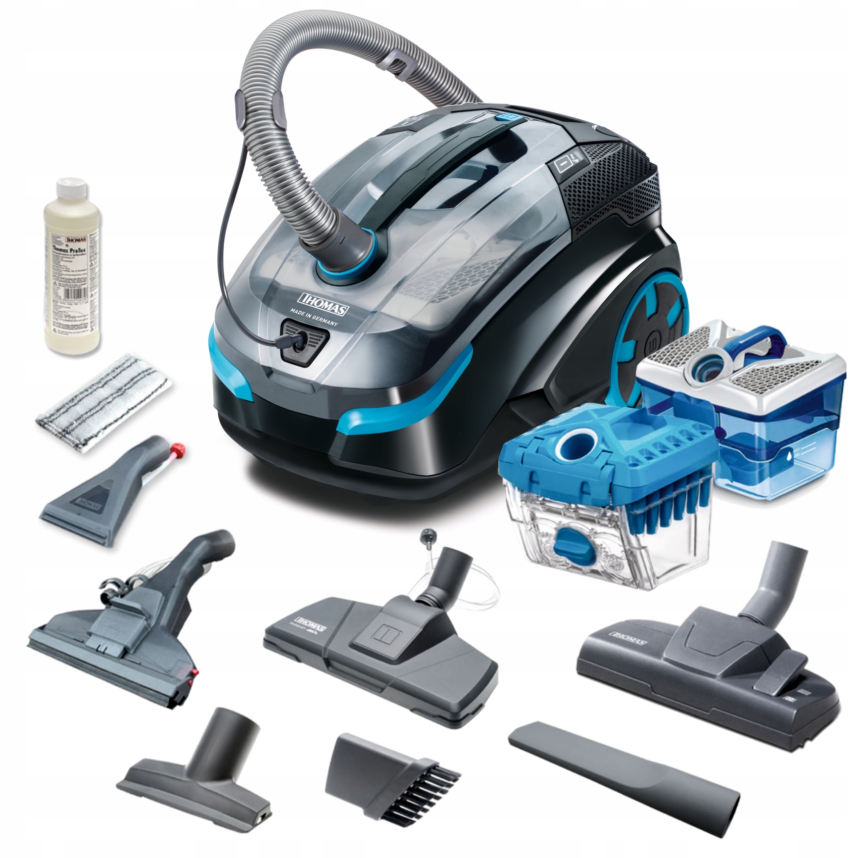 Пилосос Thomas Amfibia — це справжній комбайн для прибирання, який пропонує функції пилососу, миття підлоги, прання килимів і оббивки. Завдяки можливості вибору між водяним або циклонним фільтром ви можете адаптувати пристрій до різних потреб і поверхонь.