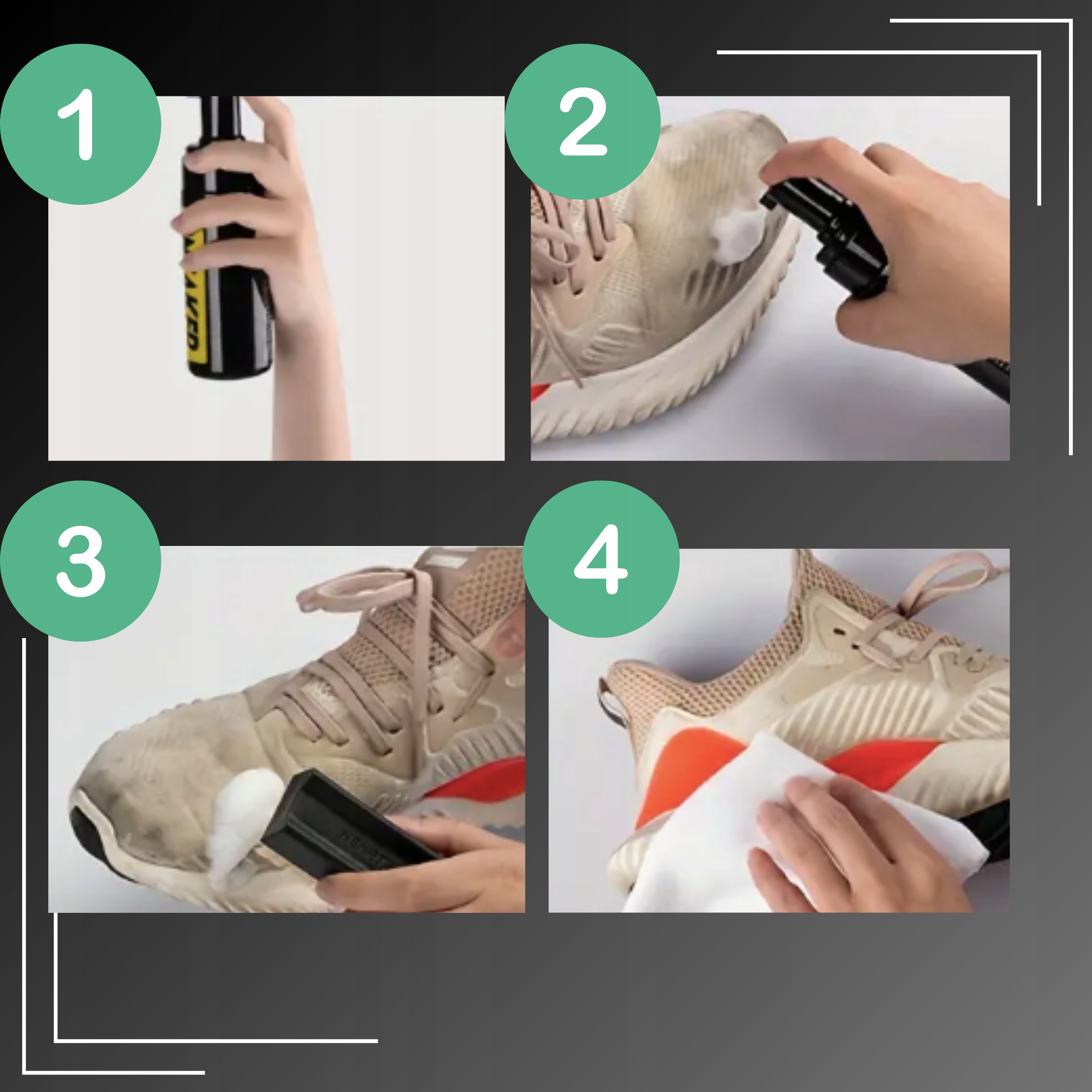 Так, нашою піною легко користуватися – лише кілька простих кроків, щоб оновити взуття.