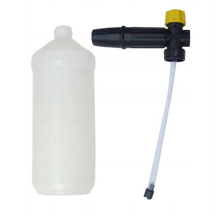 Пінний аплікатор має регульований кут водяного струменя за допомогою піни та кількість хімічного введення. Він встановлений на пістолет, завдяки чому ми обходимо внутрішню циркуляцію в омивачі і агресивні хімікати не контактують з компонентами пральної машини, уникаючи загрозипошкодження, наприклад головки насоса.