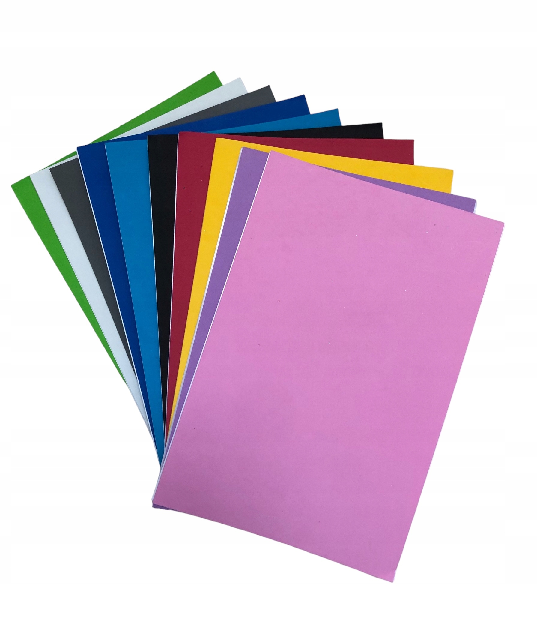 Набір із 10 шматочків блискучої піни різних кольорів.