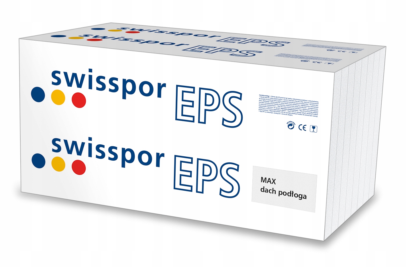 Універсальний ізоляційний матеріал Swissspor EPS MAX для покрівлі, підлоги, виготовлений зі спіненого полістиролу. Допустиме рівномірно розподілене експлуатаційне навантаження згідно з PN-EN 13163 додаток F.2 - 24 кПа, тобто 2,4 т/м2