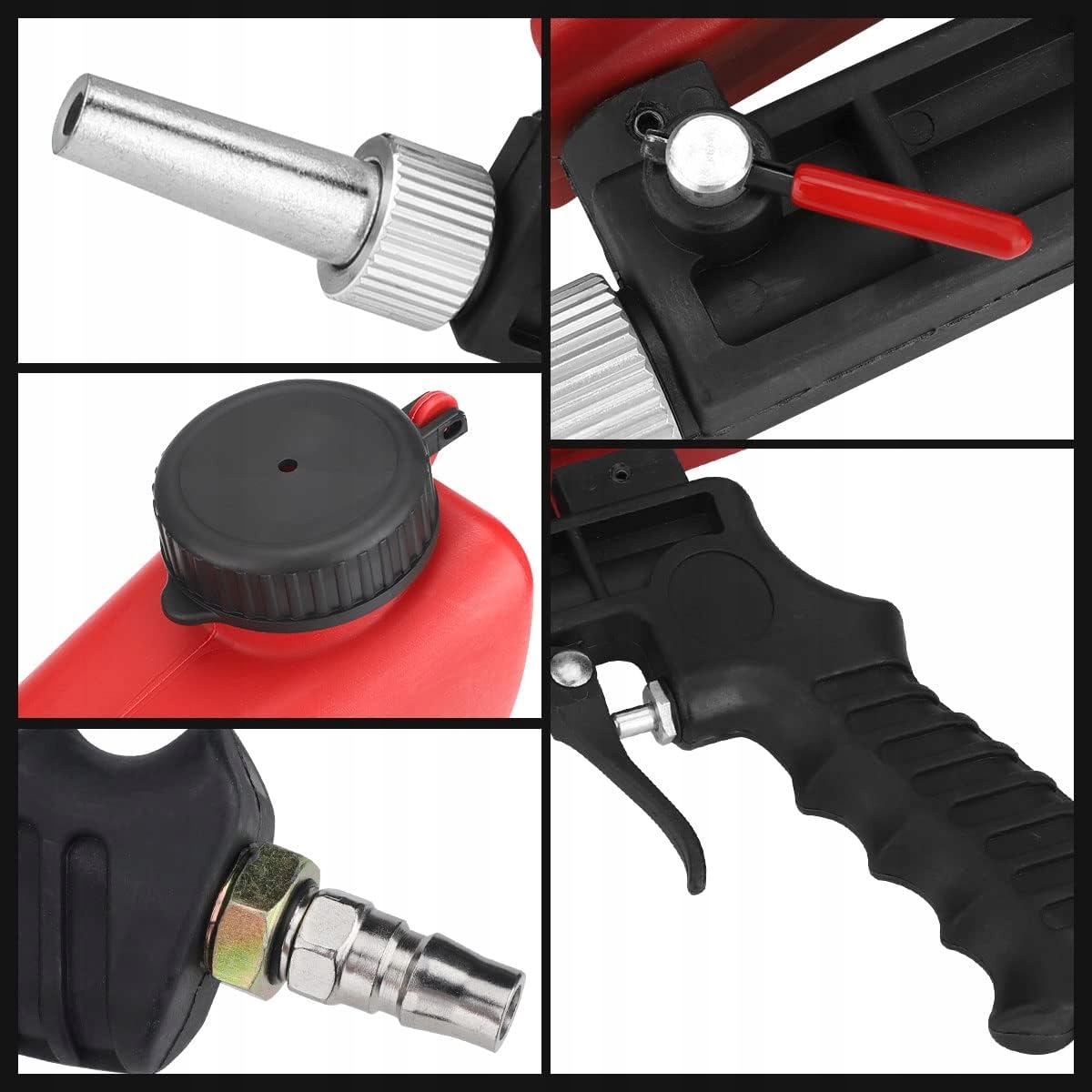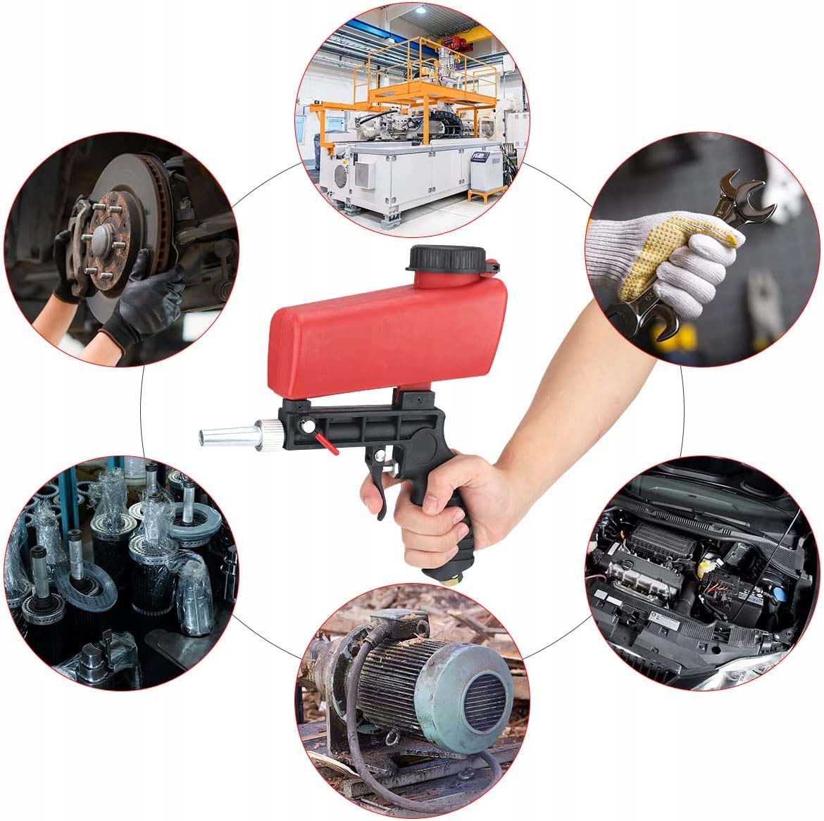 ► Прості у використанні: пневматичний пістолет з пісковика використовує ергономічно, розроблену, проти -сслпу, зручно утримувати, алюмінієвий сплав, сталевий клапан з високою твердим, простим у використанні. piaskarka przyjmuje zagęszczoną ocynkowaną dyszę, gladką ścianę wewnętrzną, niską odpornośc, szybką prędkośc piaskowania i jednolity efekt piaskowania. STOSOWANE : Maszyna do piaskowania jest szeroko stosowana do usuwania pozostałości , usuwania rdzy , renowacji starych części , cleaning of pollution in terms of dead, atomization, gratizing, removing hair, depositing coal, welding speedway, paint or signs of wear, etc.