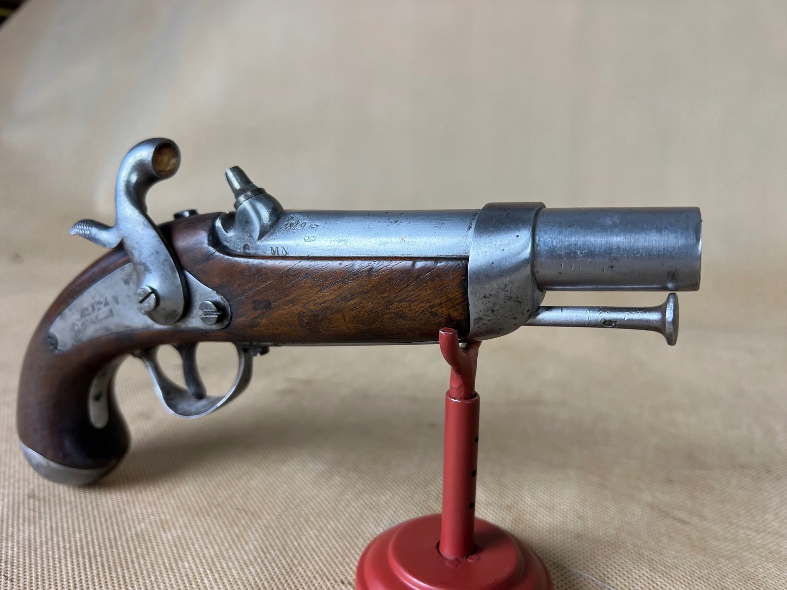 Запрошую придбати ударний пістолет французької жандармерії - модель 1842 року випуску 1849 року, про що свідчать дати, вибиті на стволі та прикладі. Замок справний, двоступеневий, з міцною пружиною, ствол чистий. В дуже хорошому стані, всі елементи, включаючи гвинти, заточені. Оригінальний молоток в комплекті. РЕКОМЕНДУЮ