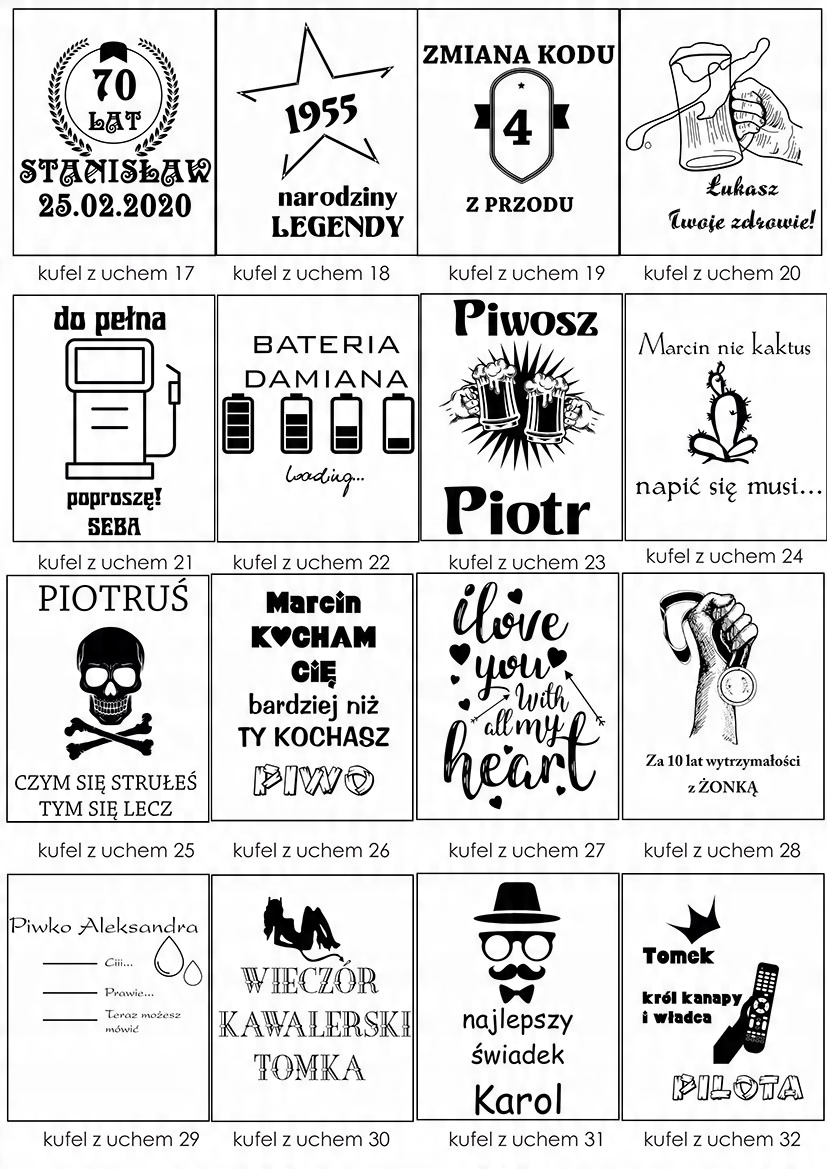 - у повідомленні продавцеві вкажіть обраний візерунок і дані гравіювання наприклад: Pattern 2, Super Guy Marek< /li>