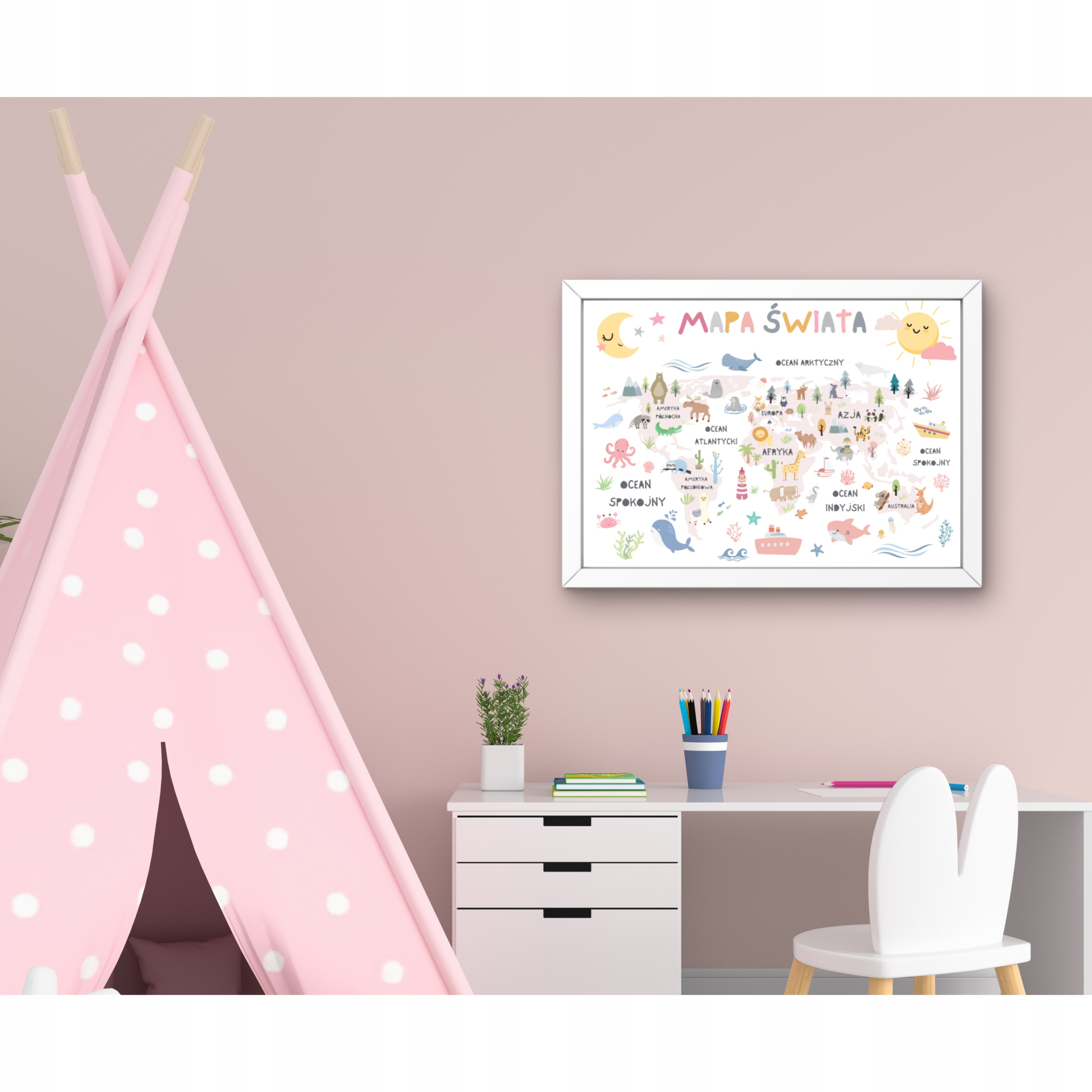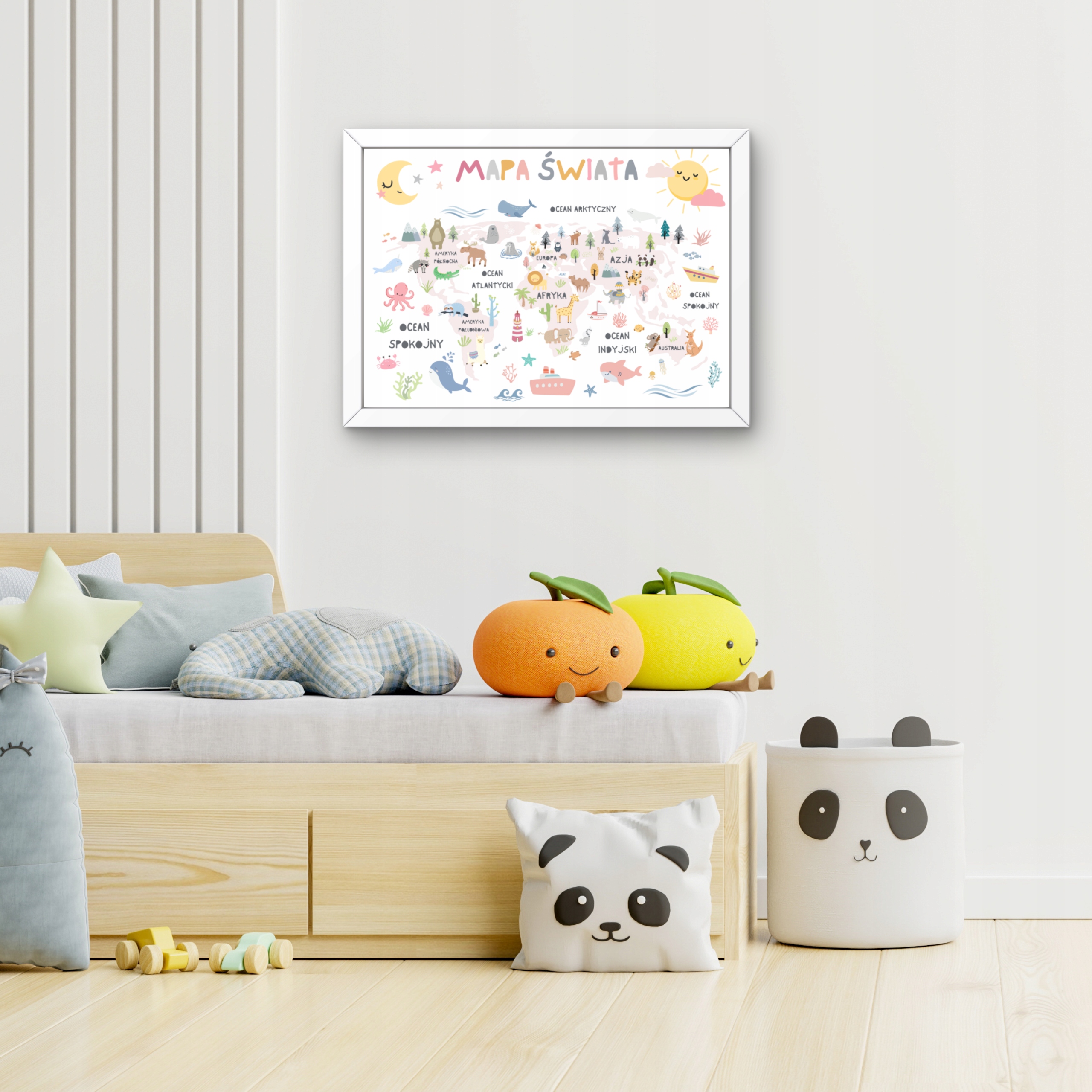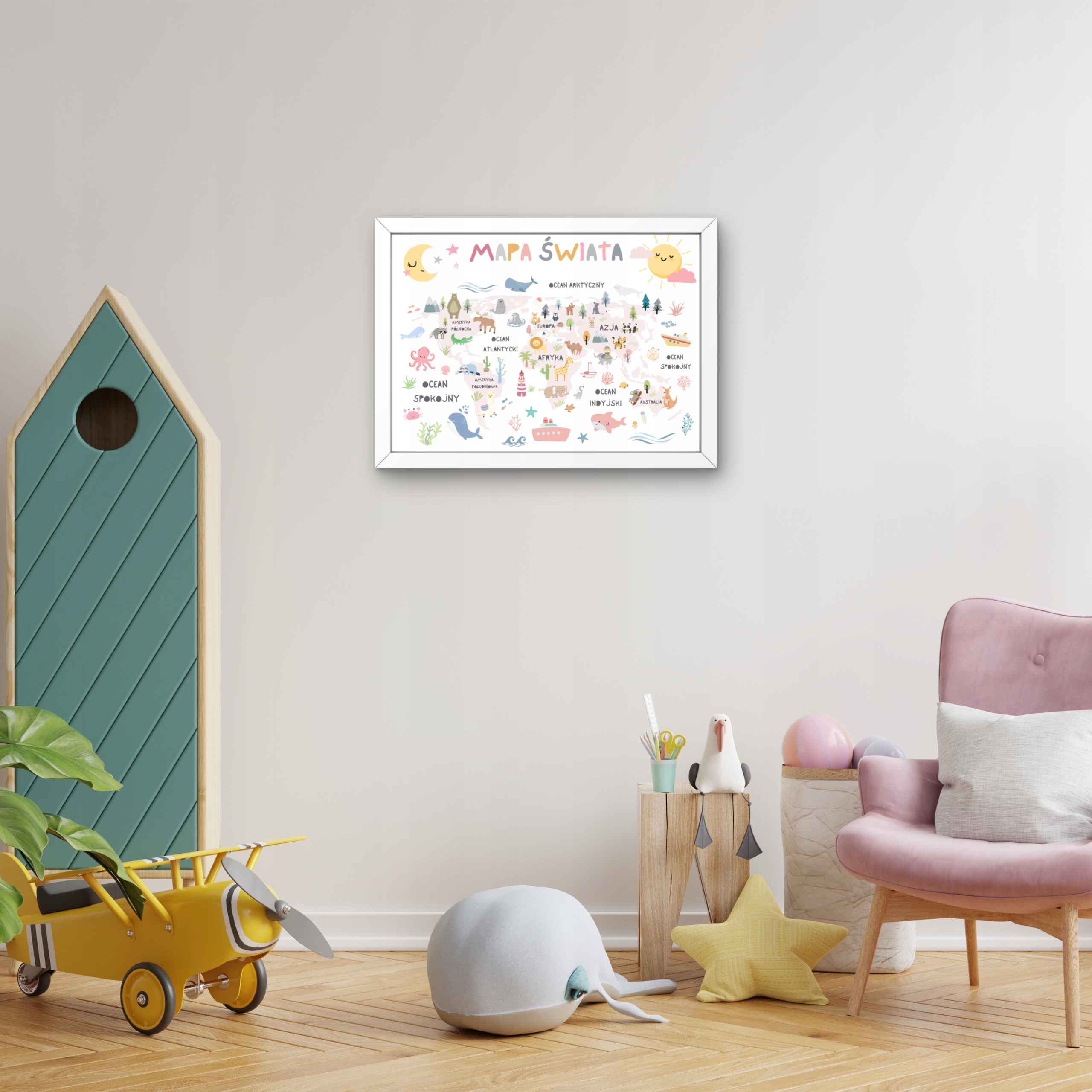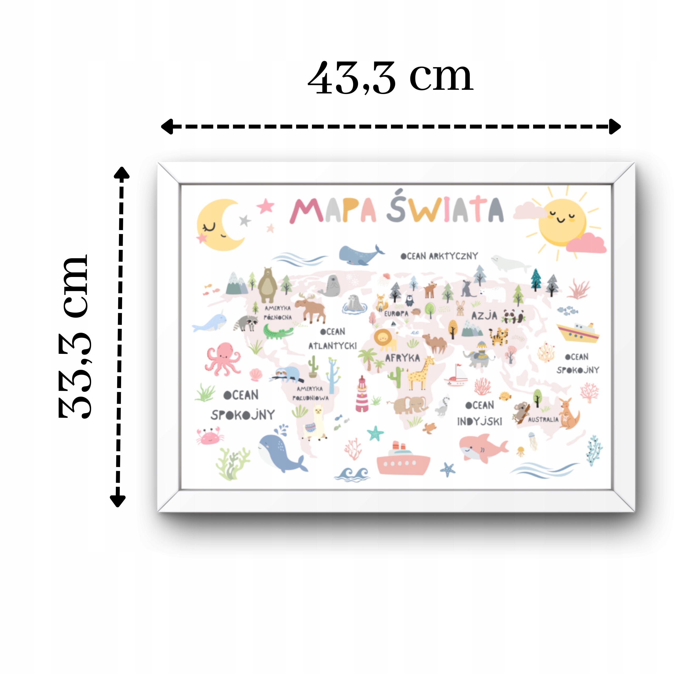 ПЛАКАТ КАРТА СВІТУ ТВАРИНИ ДЛЯ ДІТЕЙ + РАМКА А3