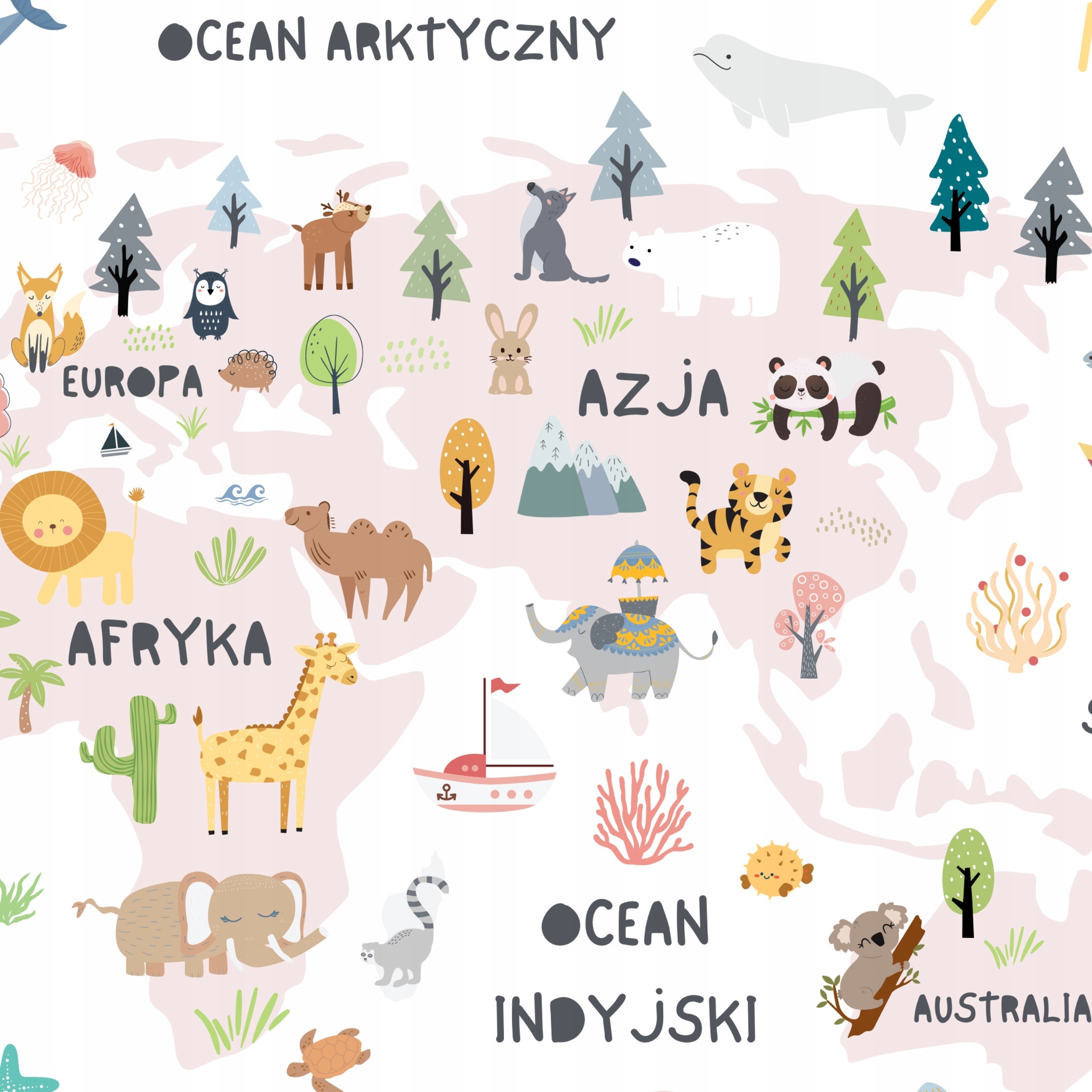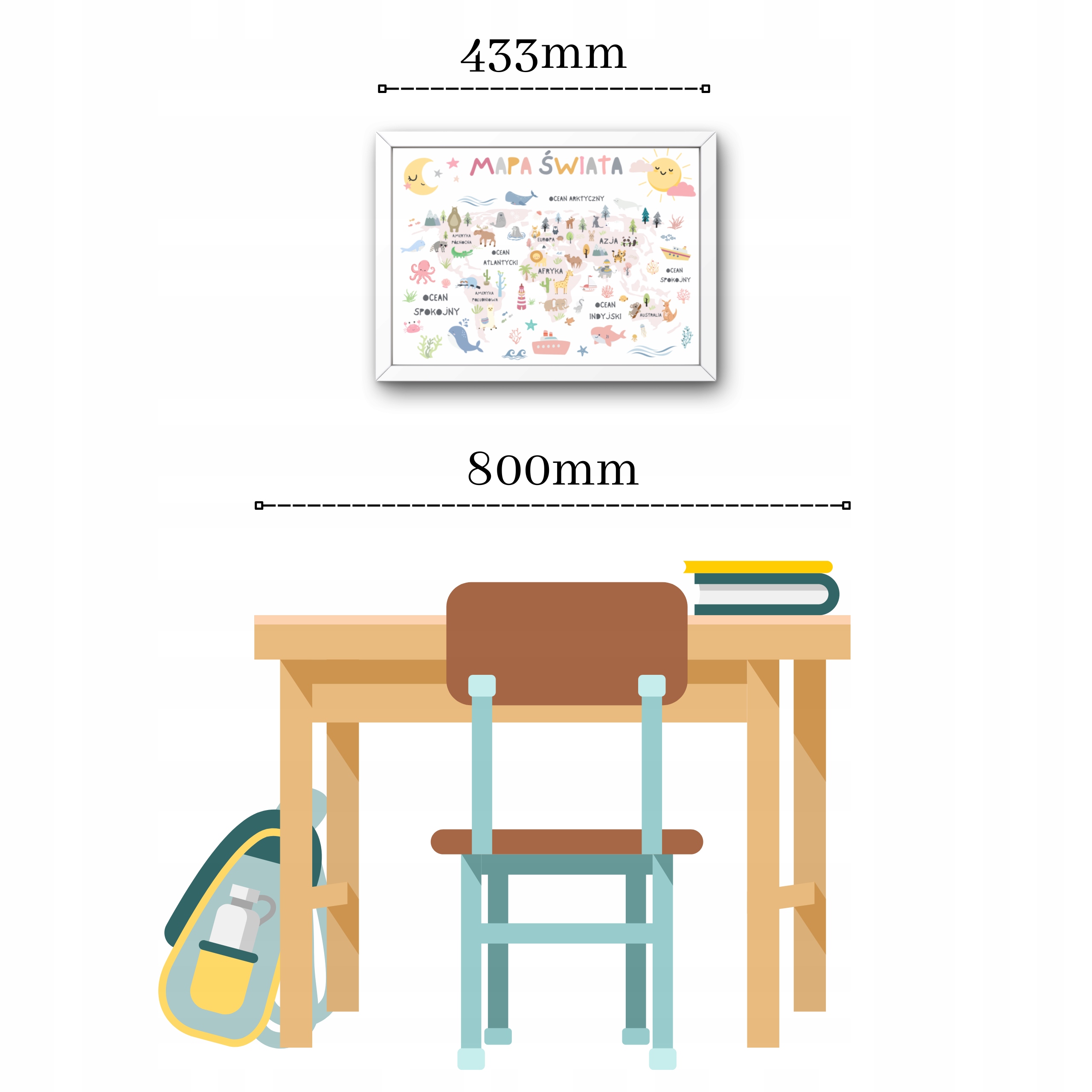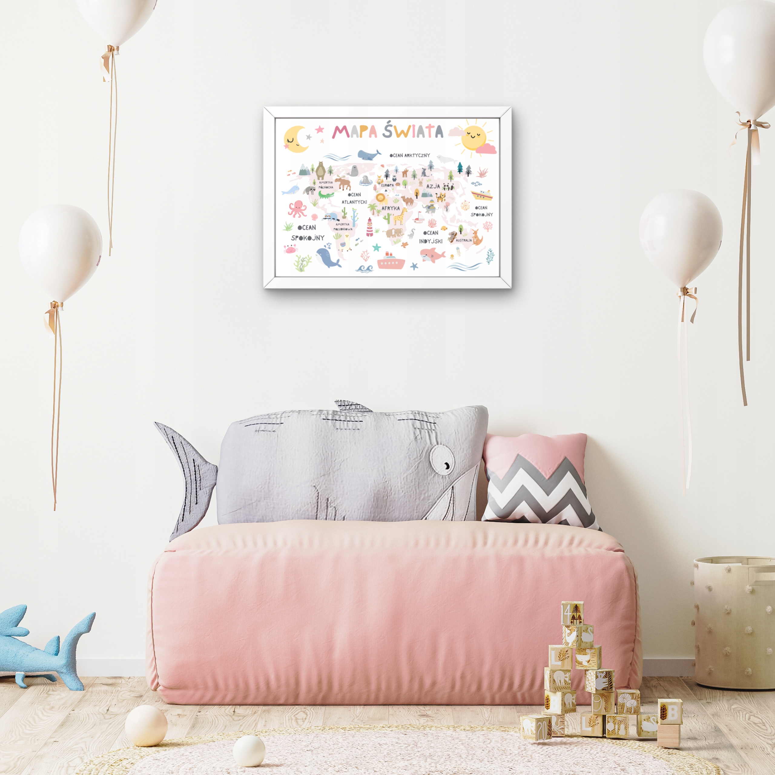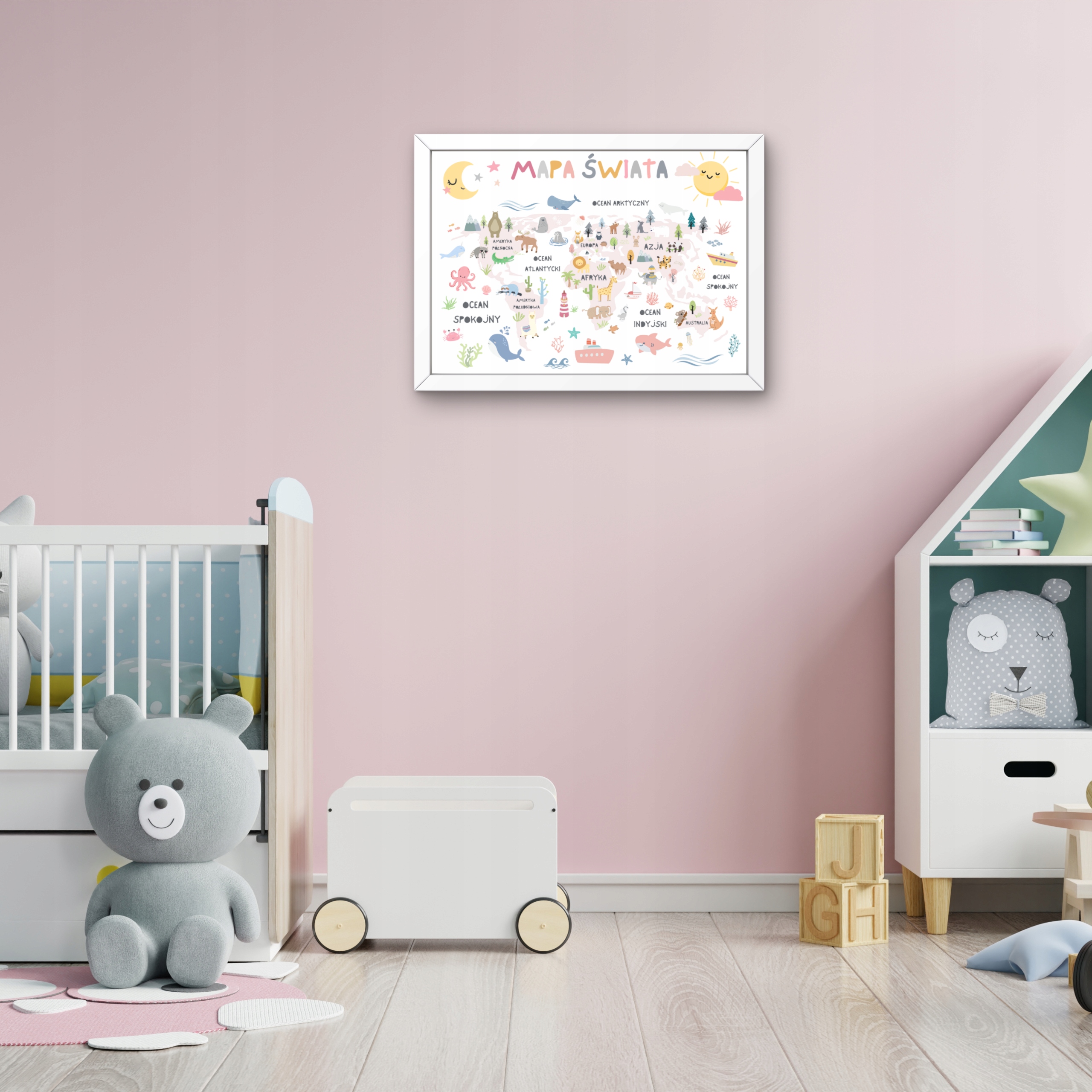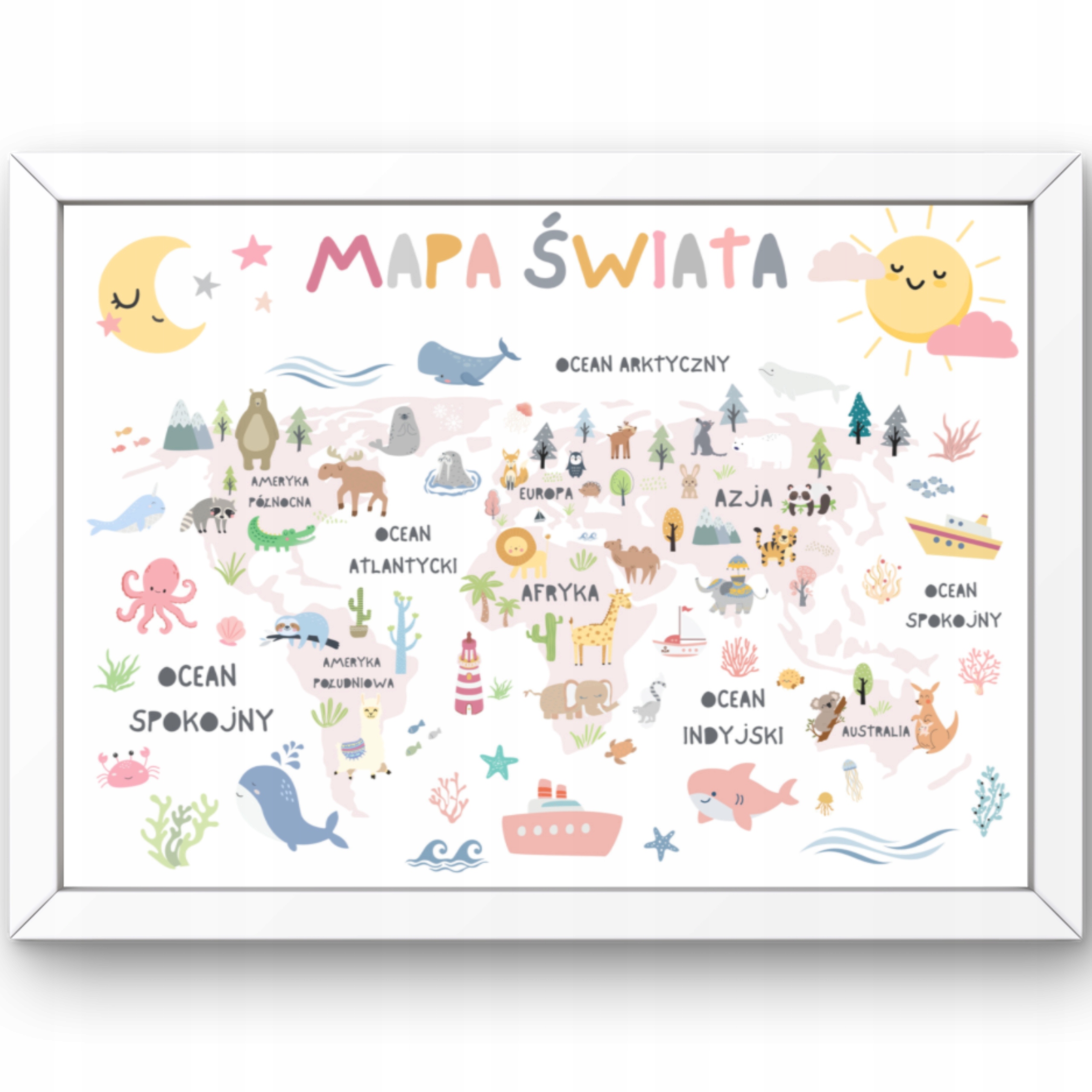 ПЛАКАТ КАРТА СВІТУ ТВАРИНИ ДЛЯ ДІТЕЙ + РАМКА А3