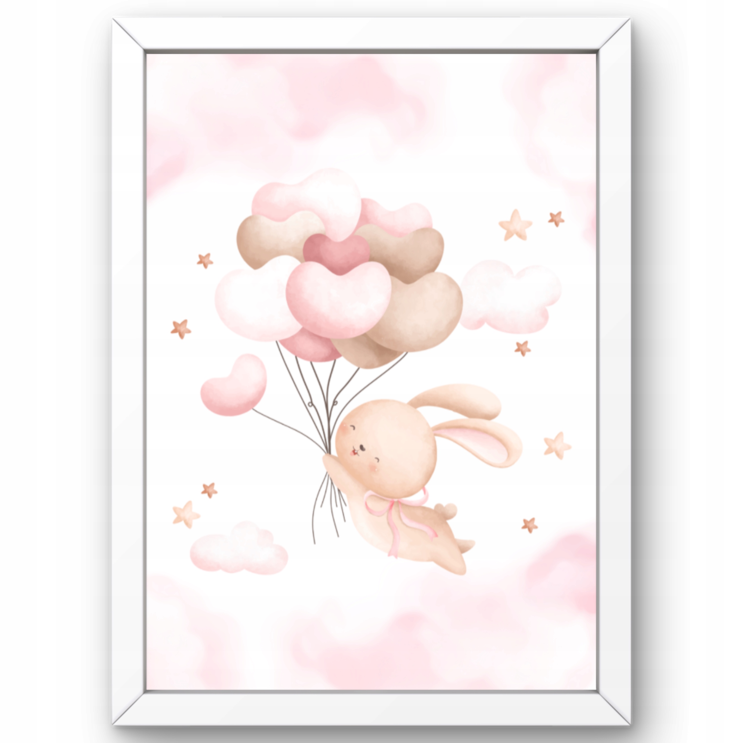 ПЛАКАТИ 3X ПОВІТРЯНІ КУЛІ ЗАЙЧАКИ МІСЯЦЬ ПАСТЕЛЬНО-РОЖЕВИЙ