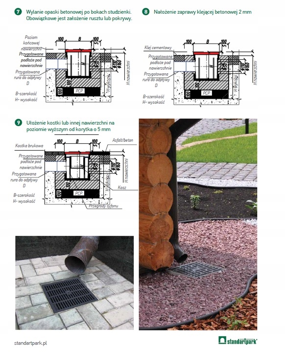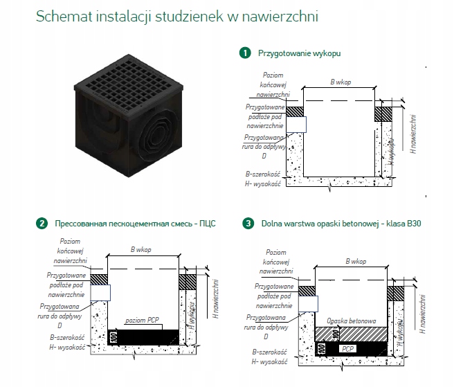 Лаз призначений для локального (точкового) збору та відведення води з поверхні, а також з покрівлі в корпус з'єднання водостічної покрівлі і лінійних водовідвідних каналів. Колодязь виготовлений із пластику, витримує проїзд легкового автомобіля, можливе підключення дренажу чи каналізації.