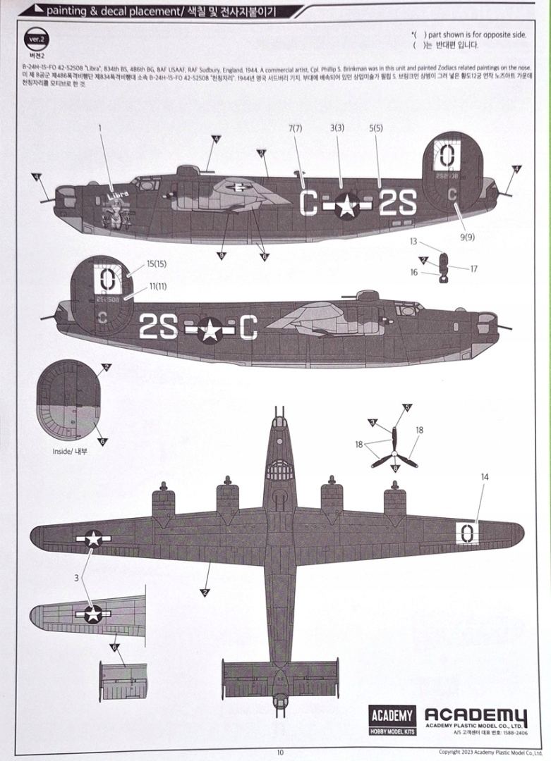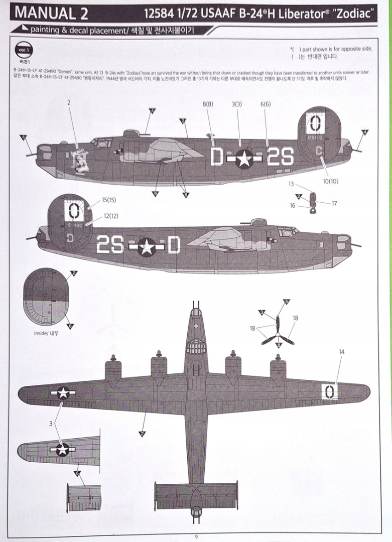 Пластикова модель B-24 H Liberator Zodiac+фарби, клей, щітки, лак