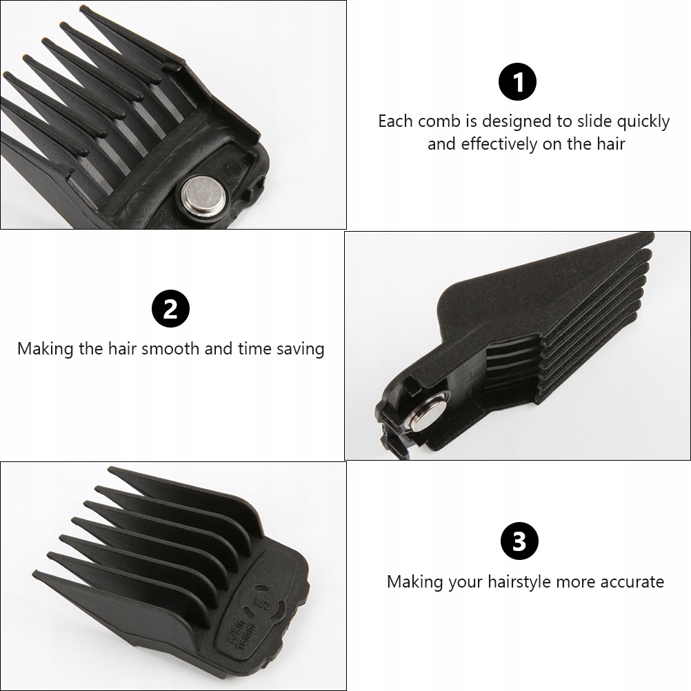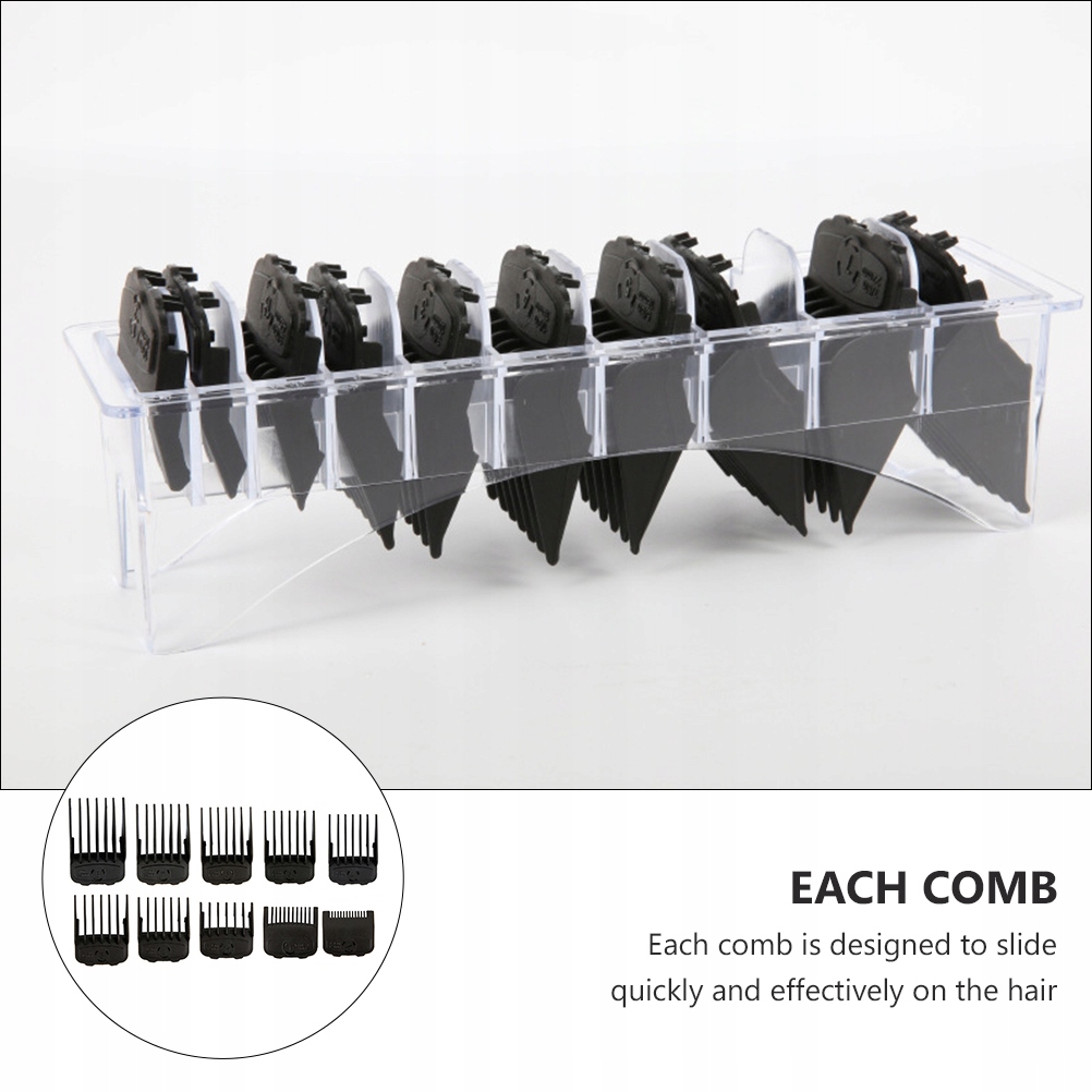 Якщо ви шукаєте гребінець, що веде до вашої машини для відсікання волосся, ви не можете пропустити наші гребінці, що ведуть до машини для відсікання волосся. Виготовлені з пластику, вони є і довговічними. Є 10 розмірів, які відповідають різним потребам. Ви заслуговуєте одного набору.