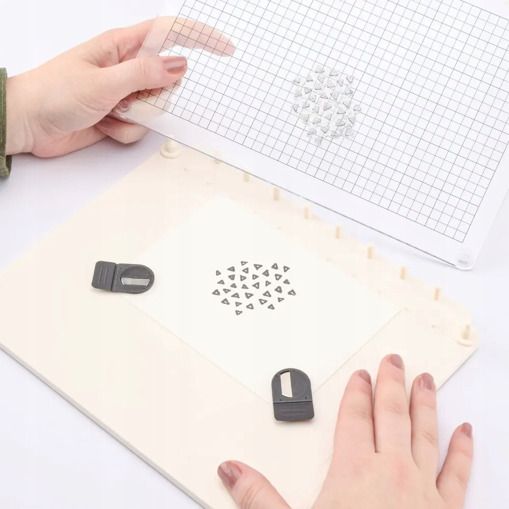 Щоб полегшити процес штампування, платформа постачається з двома магнітами, які дозволяють прикріпити папір або картон до основи. Під час штампування матеріал не буде рухатися.