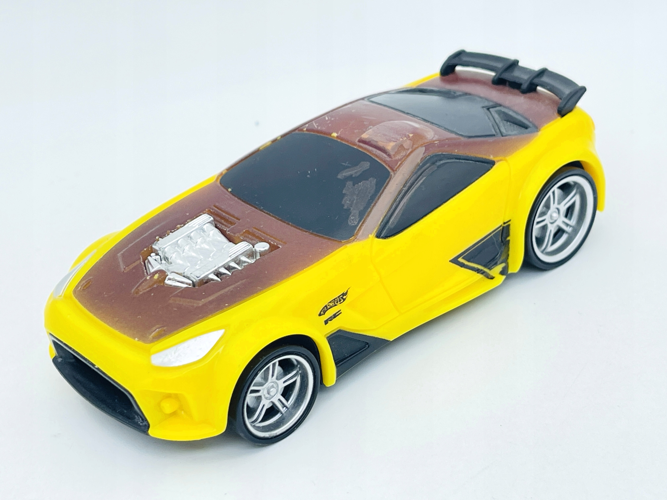 Ресорак Hot Wheels V8192 — модель, яка привертає увагу своїм яскравим поєднанням жовтого та коричневого кольорів. Виготовлений з металу та пластику, він забезпечує не тільки естетику, але й довговічність. Варто звернути увагу на деталізований двигун, розміщений на даху, і стильний спойлер, який надає йому спортивний характер. Хоча модель має кілька дрібних подряпин, її загальний стан хороший, що робить її привабливою для колекціонерів. Це ідеальний приклад сучасного дизайну в мініатюрі, який може збагатити будь-яку весняну колекцію.