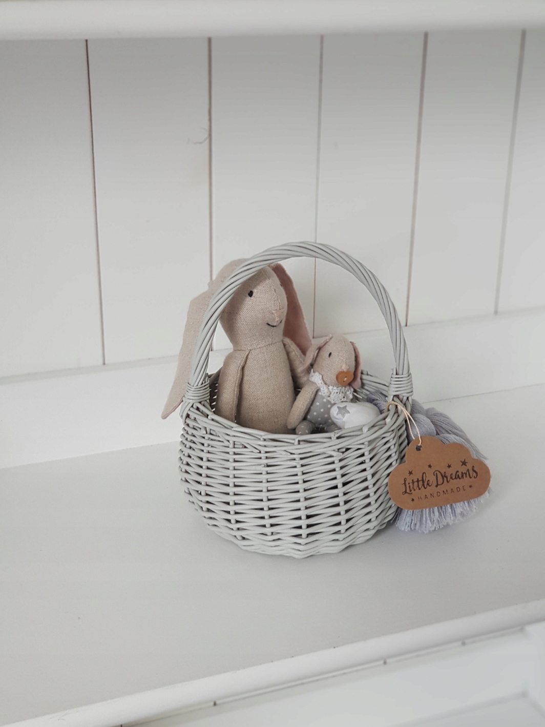 Прекрасне доповнення до прикраси дитячої кімнати та багато іншого. Він буде використаний для зберігання різних дрібничок або може бути невеликою сумкою. Уперед і прикріплений в іншому місці. Він пофарбований у світло -сіру спеціальну екологічну фарбу, яка дуже стійка до пошкодження. Наші фарби мають сертифікат PZH, і ви можете намалювати дитячі іграшки та меблі.