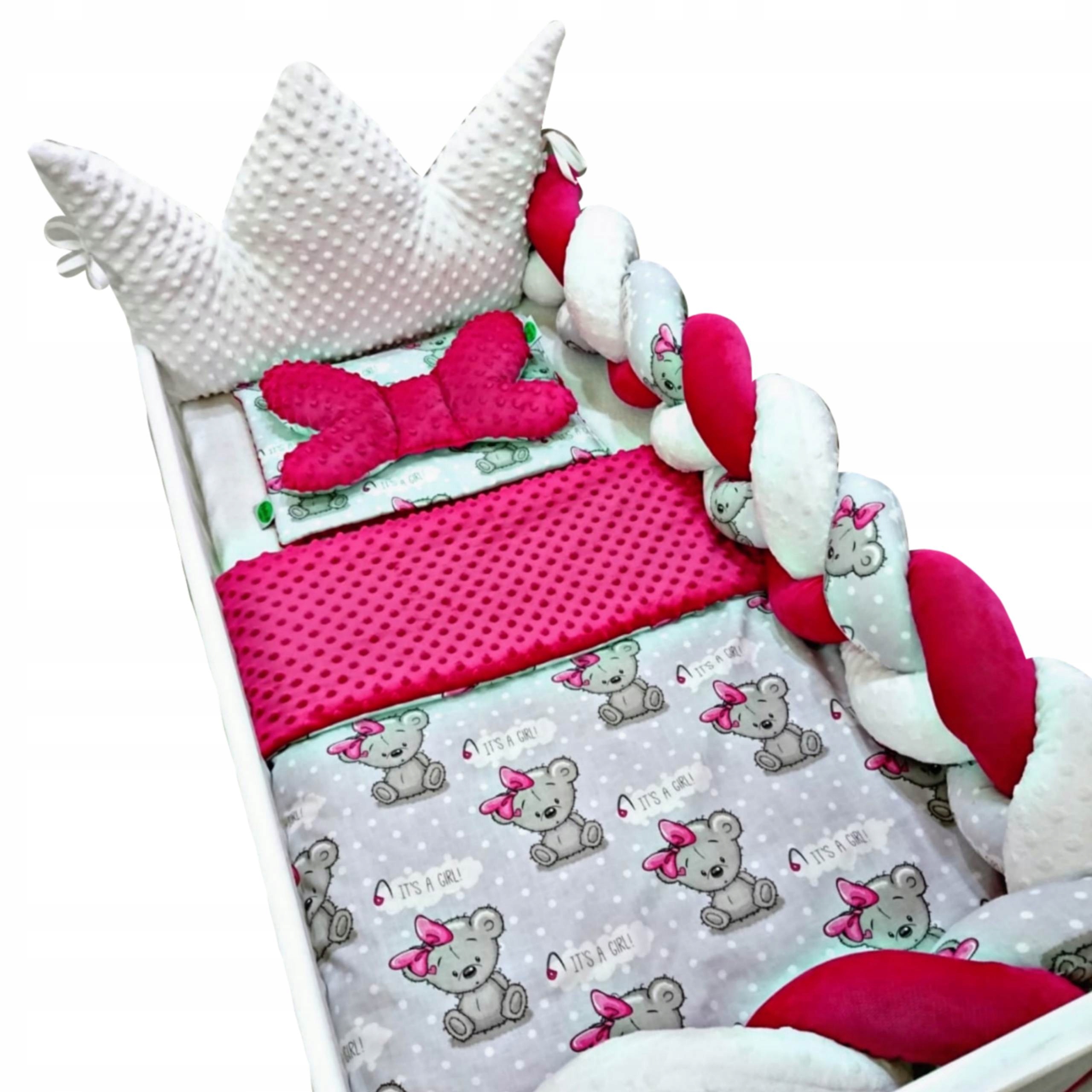 Протектор для ліжка 140x70 см - плетена тасьма 210 см + подушка для захисту корони 70 см оксамитова норка