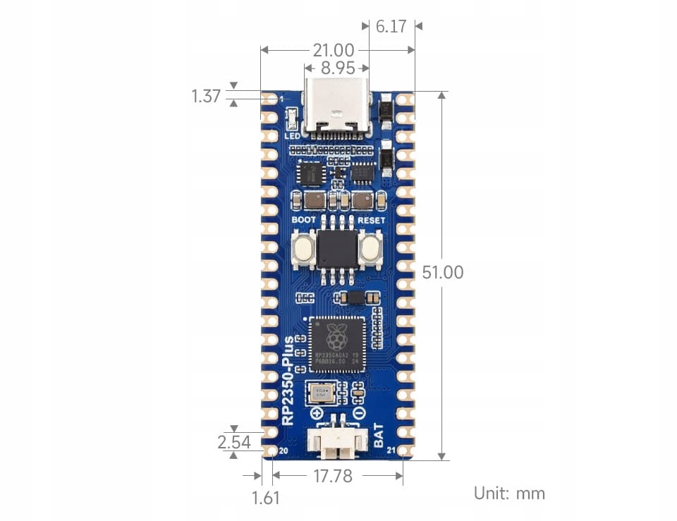 WaveShare RP2350-PLUS-M-MEVERMANT з двоядерним мікроконтролером Raspberry PI RP2350A, відповідно до Raspberry Pi Pico 2